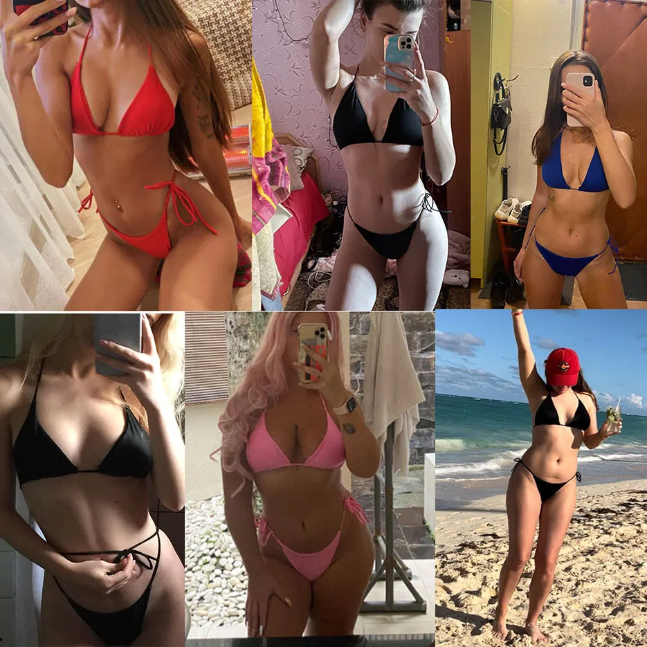 Summer Women Coild Color Bikini Set Sexy Push Up Bra Tie Side G-String Thong Swimwear Beach Brazilian Bathing Suit