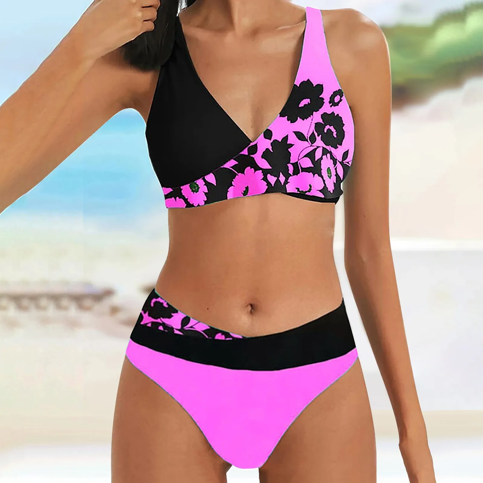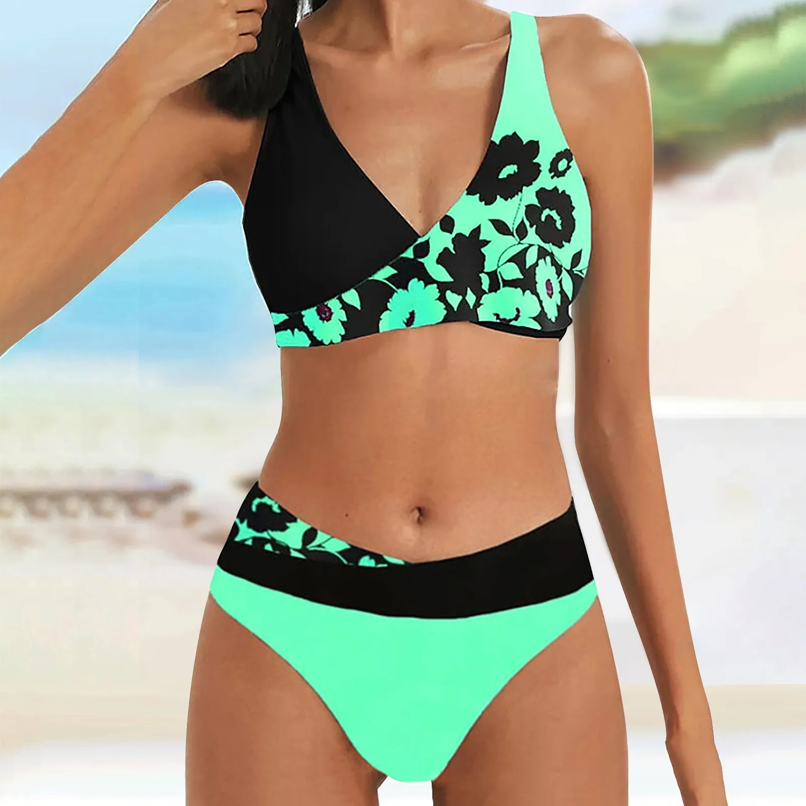 Women's Printing High Waisted Swimwears Tankinis Sets V Neck High Waist Swimsuit Two Pieces Outfits Ladies Sexy Bikini Sets