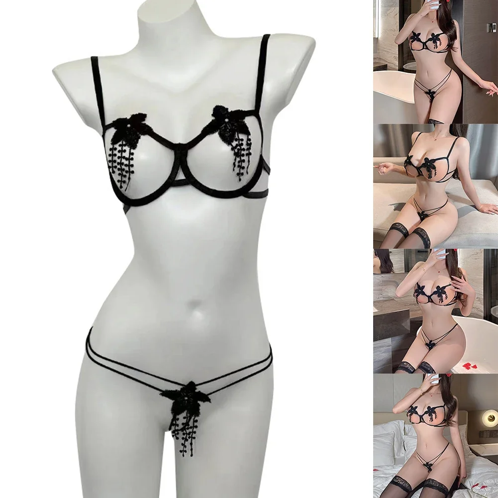 Womens Backless Sexy Underwear Bikini Beachwear Erotic Free To Take Off Underwear Set Backless Bare Buttocks Chest Pajamas