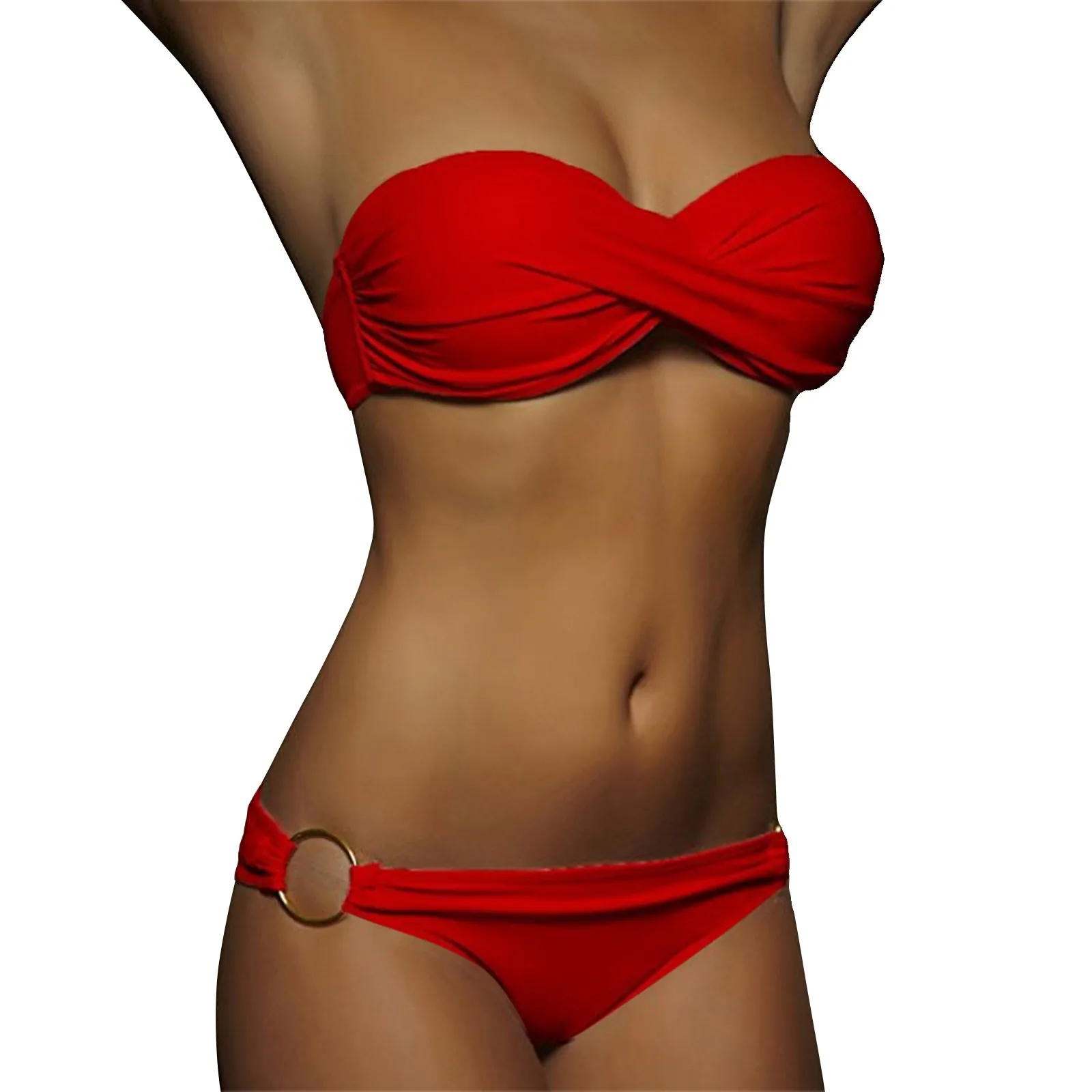 Name | Solid Color Metal Ring Swimsuit Two Piece Women's Detachable Suspenders High Waisted Bikini Sets Sexy Bathing Suits For Women |