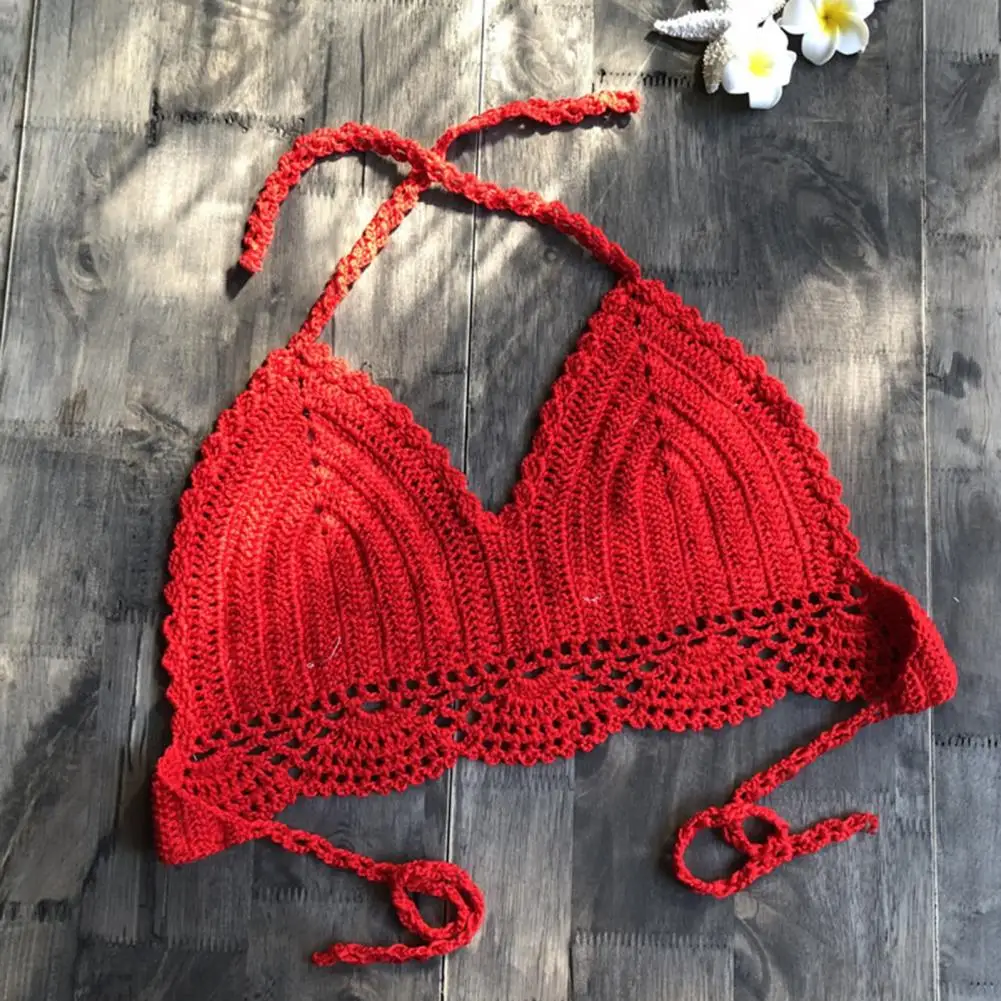 Sexy Halter Women Crochet Bikini Crop Tops Boho Beach Camisoles Tank Top Knitted Backless Swimwear Women's Swimsuit Knitted Cami