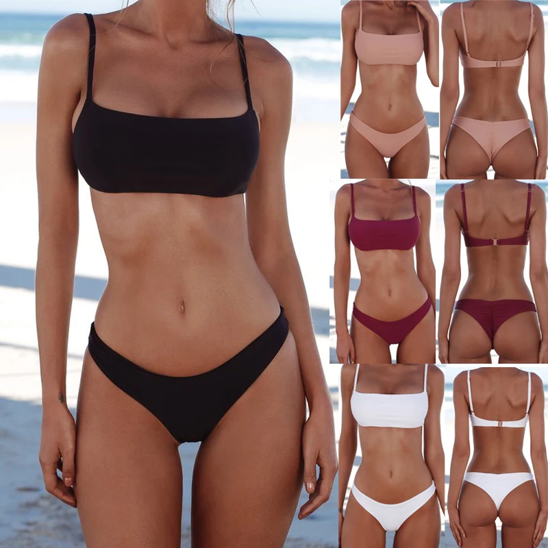 Summer Women Solid Bikini Set Push-up UnPadded Bra Swimsuit Swimwear Triangle Bather Suit Swimming Suit Biquini