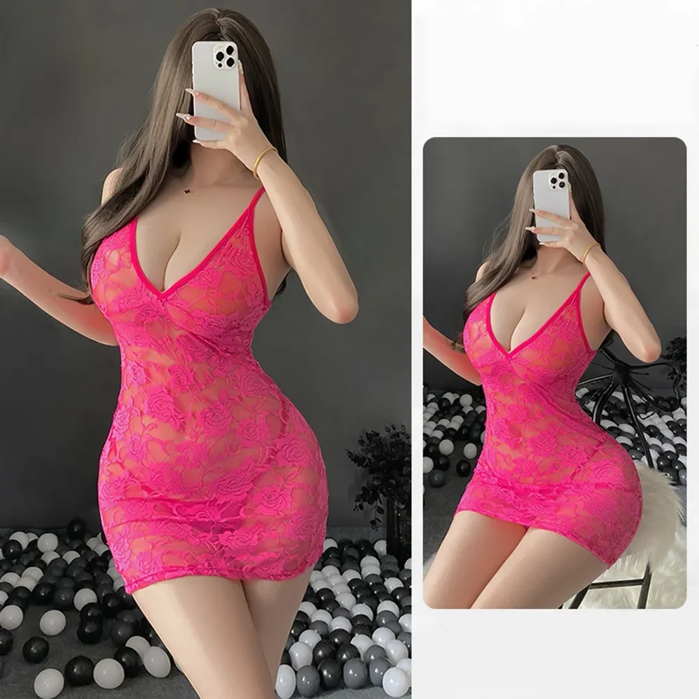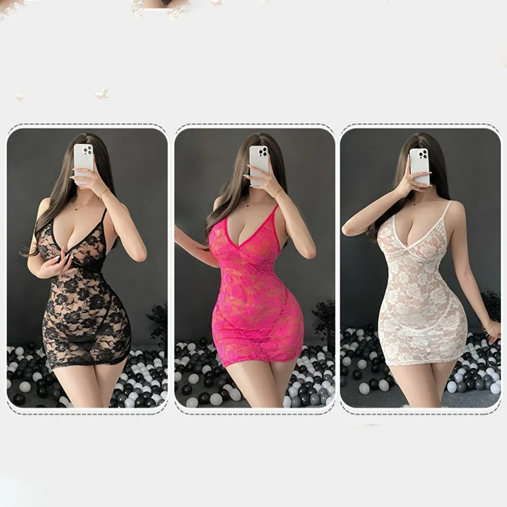 Name | Sexy Lingerie Women Lace SeeThrough Suspender Dress Thong Set Hot Girl Slim Rose Red/Black/White Flower Pattern |