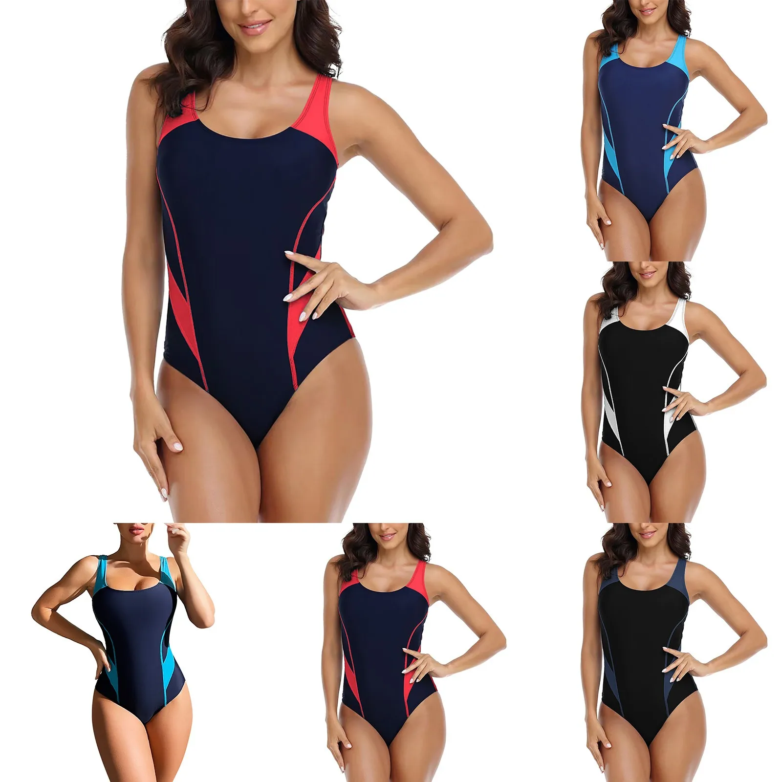 Name | Women's One Piece Sports Swimwear Splicing Color Matching Bikini Beach Wear Bathing Suit Round Neck Adjustable Straps Swimsuit |