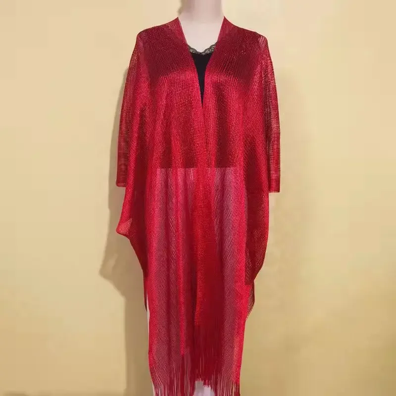 2024 Sexy Fringe Women Tassel Mesh Sheer Shiny Knitted Tunic Beach Cover Up Cover-ups Beach Dress Beach Wear Beachwear Female