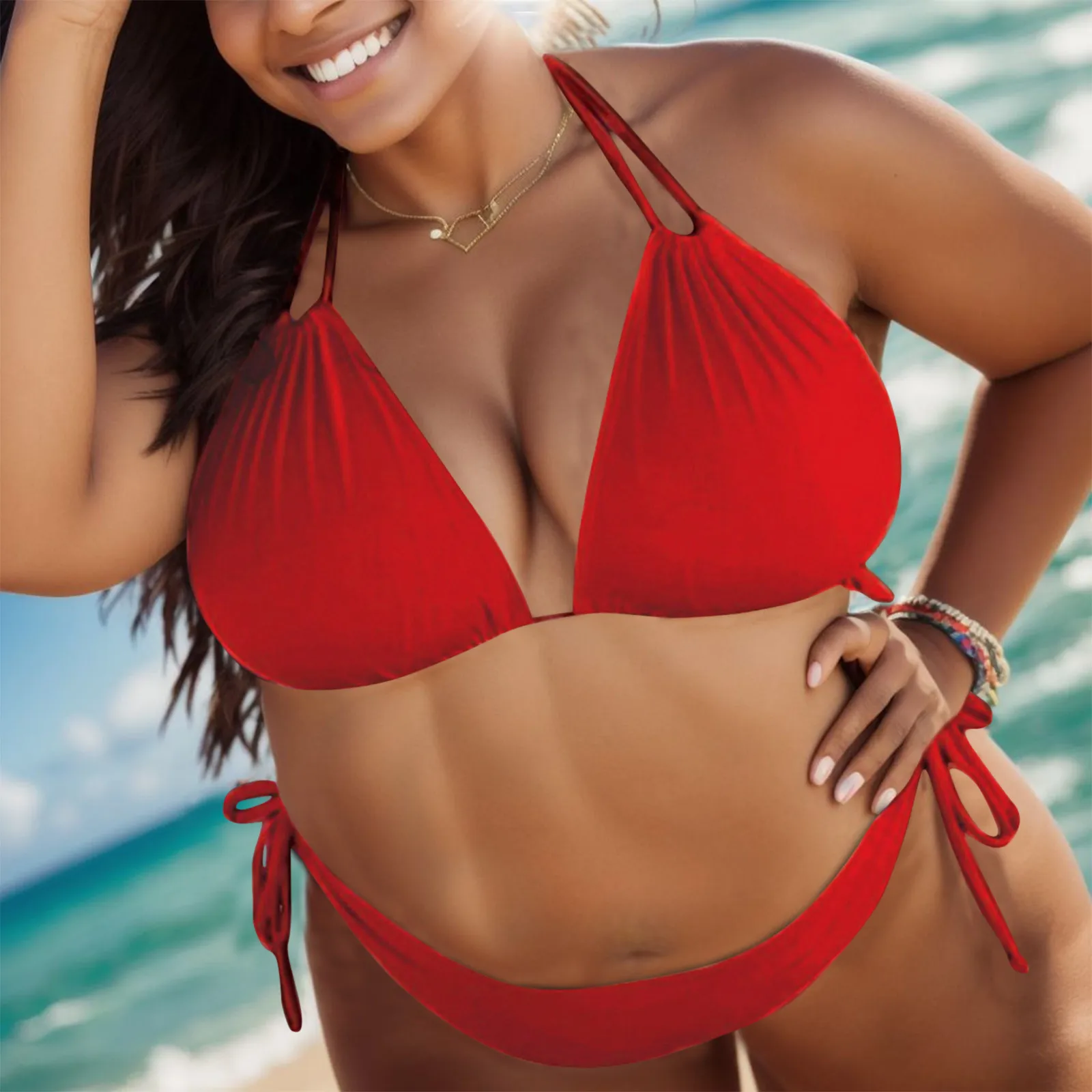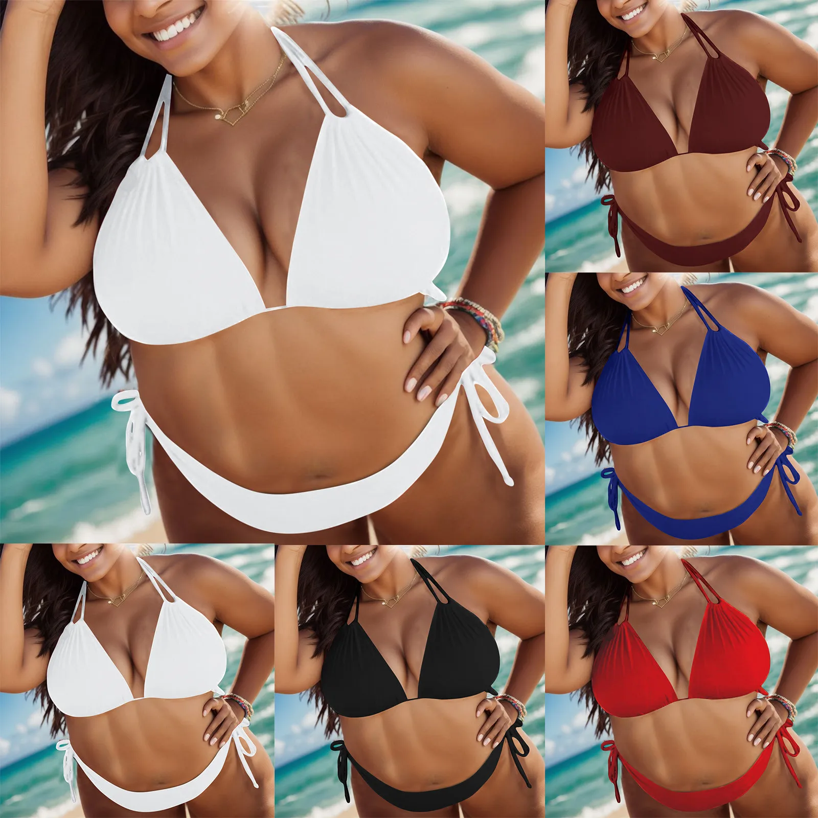 Summer New Push Up Bra Women's Swimsuit Sexy Double Tie Up Halter Two Piece Bikini Swimsuit Female Plus Size Swimming Beachwears