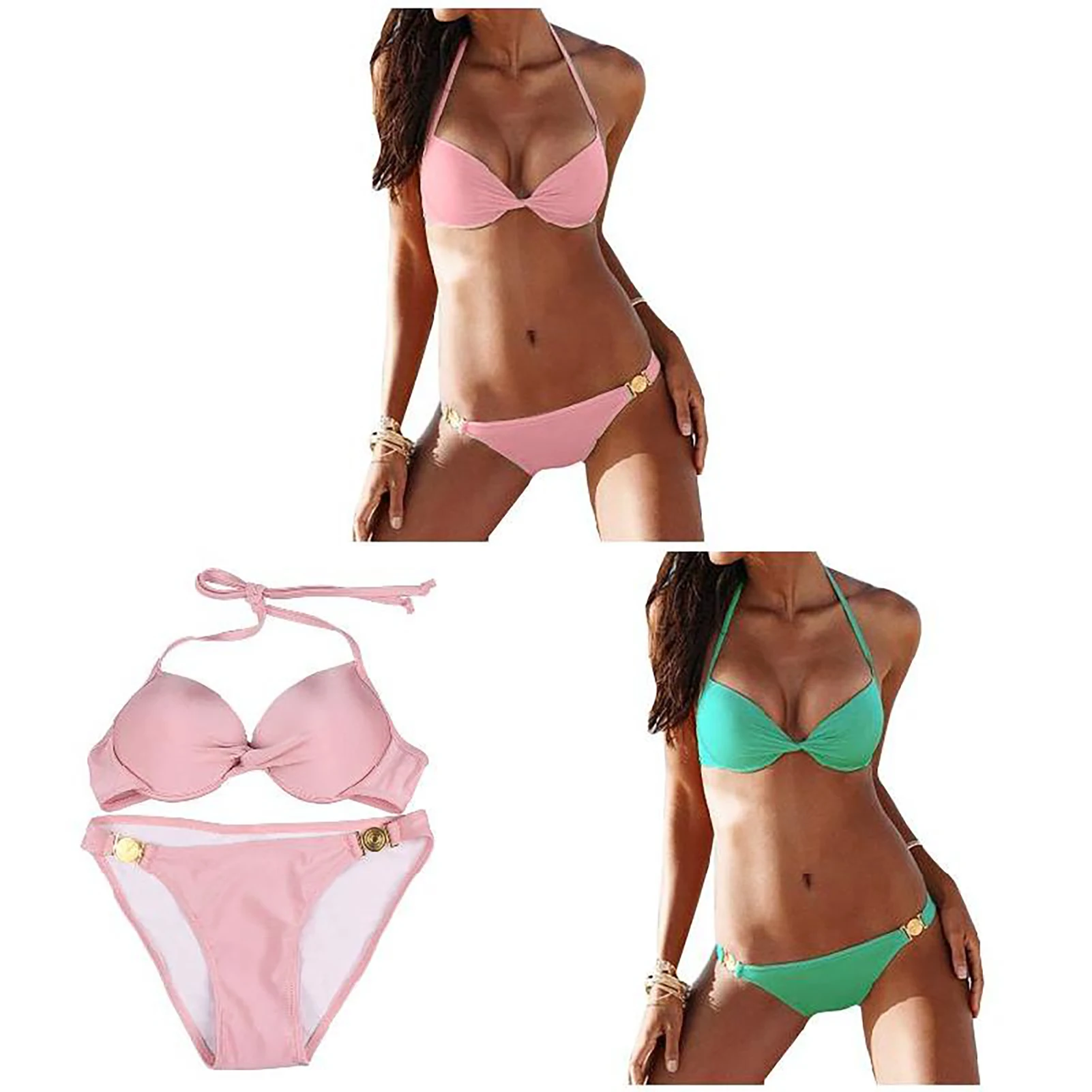 Name | Ladies Solid Color Swimsuit with Adjustable Straps Simple Bikini Set Great Gift for Wife Girlfriend |
