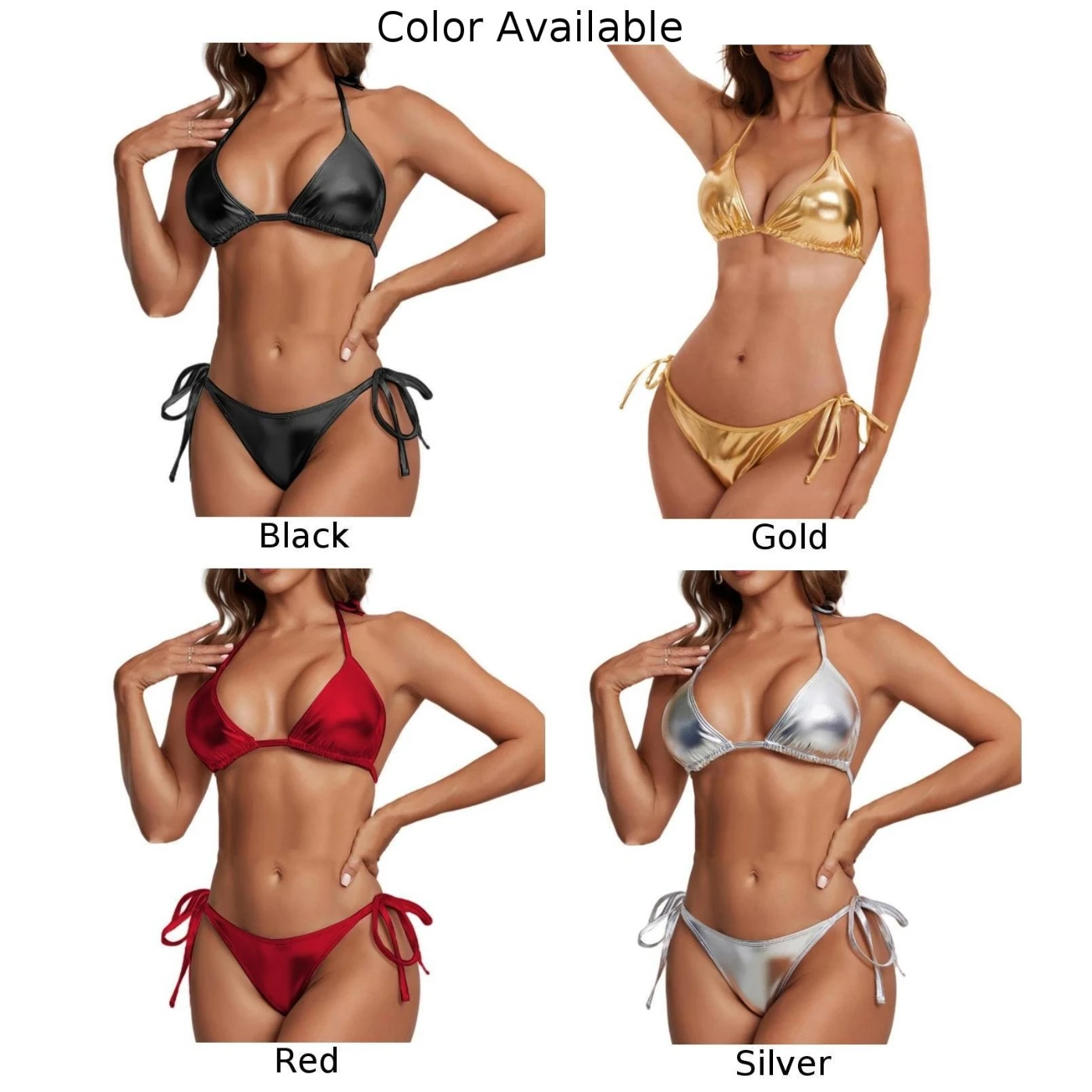 Women Beach Bikini Set Sexy Wet Look Faux Leather Bra Thong Panties Outfit Swimsuit Lace-up Underwear 2pcs Erotic Lingerie