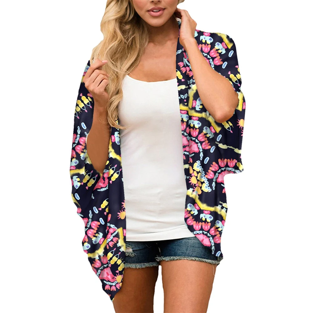 Kimono Beach Tropical Chiffon Cardigans Short Boho Resortwear Cardigan Vibe Swimsuits Cover Up Holiday Mantle Coat Shawls Summer