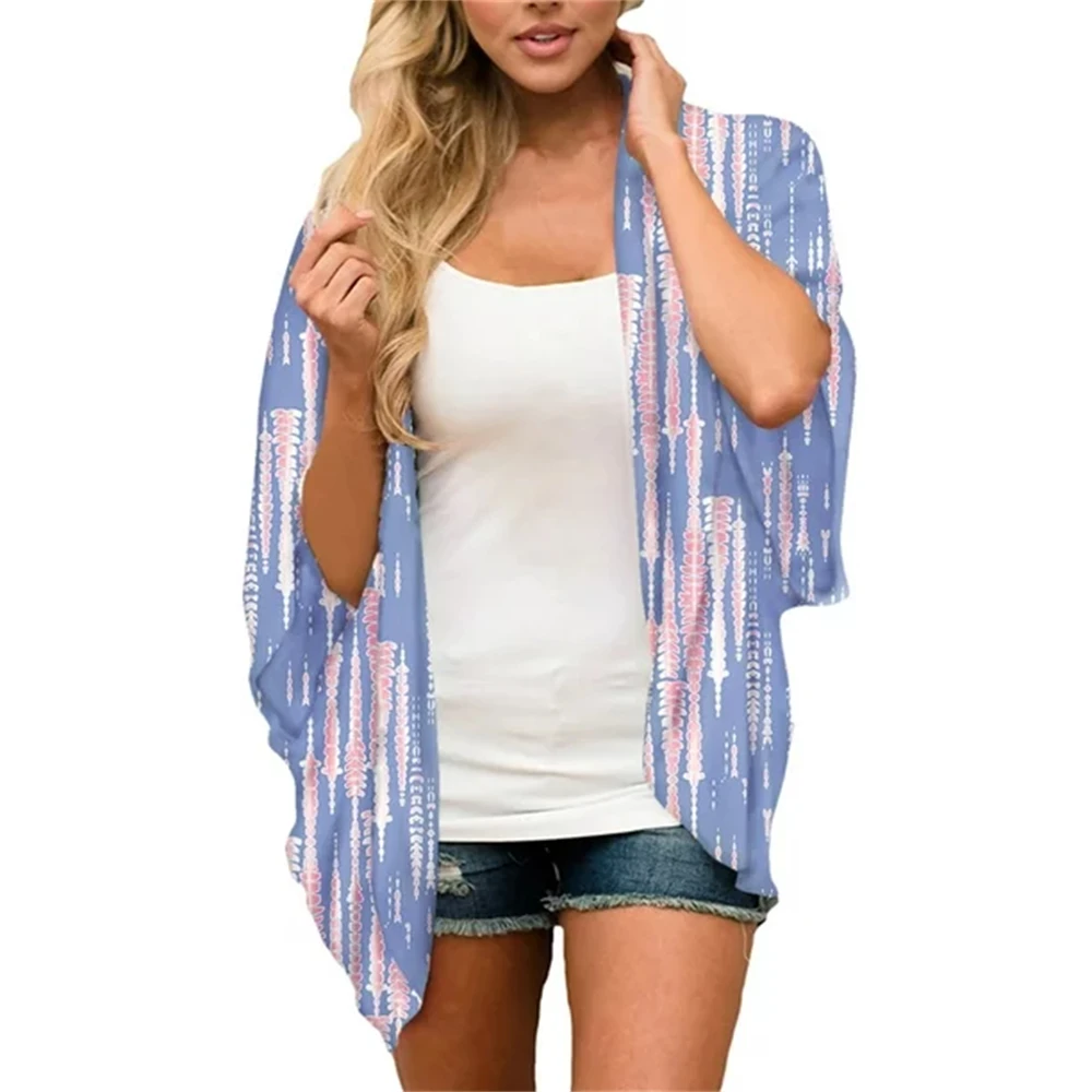 2024 New Women Summer Long Flowy Kimono Cardigans Boho Chiffon Floral Beach Cover Up Tops Beachwear Hawaii Chiffon Cardigan Tops