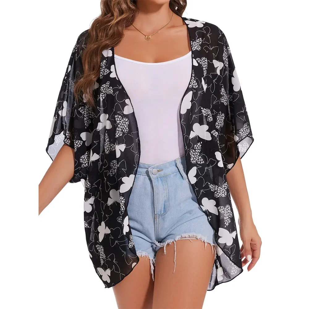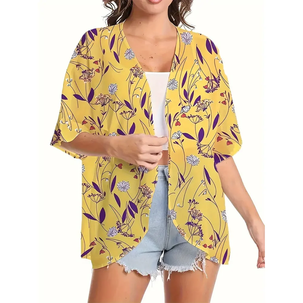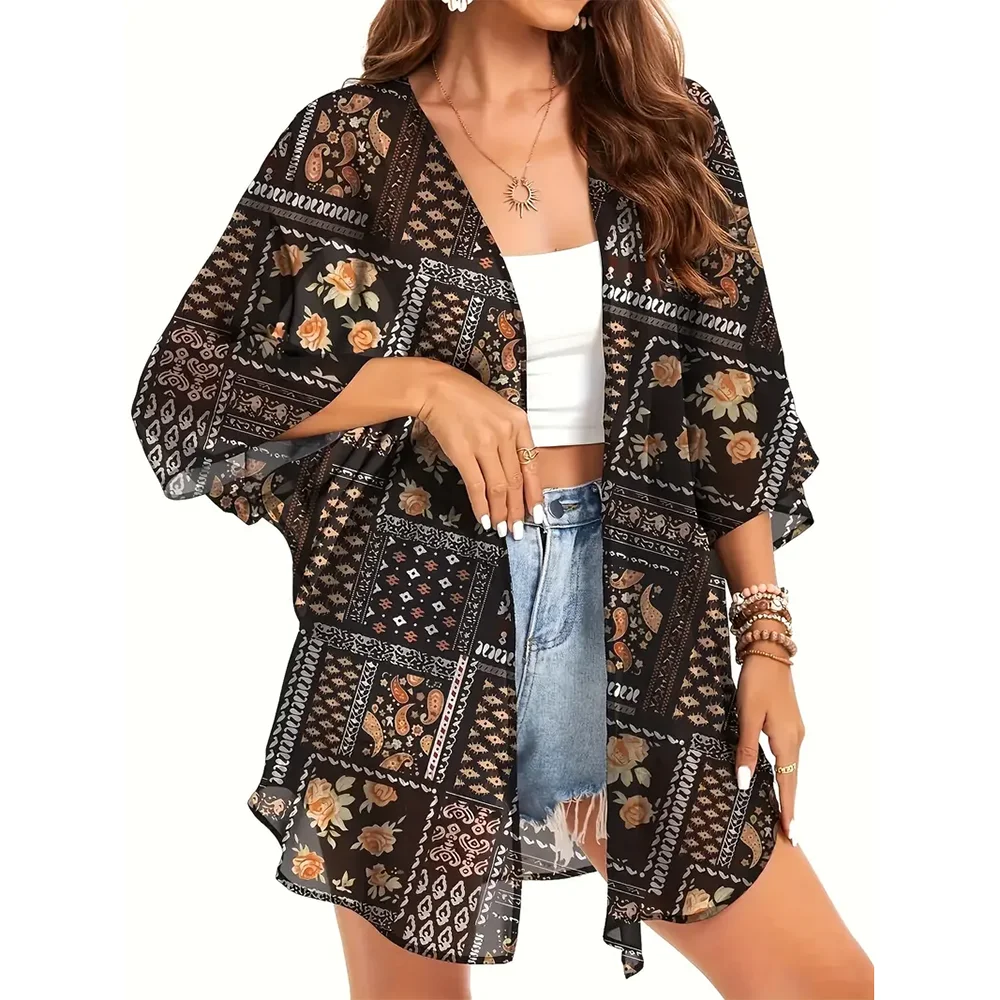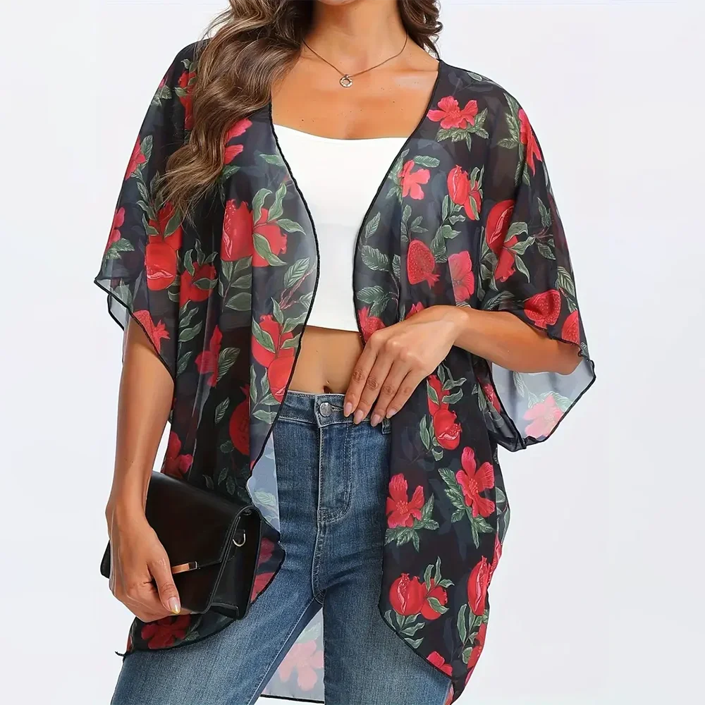 New Women's Floral Print Chiffon Cardigan Shirt 2024 New Elegant Beach Cover-Up Tops Cool And Breathable Clothing For Summer