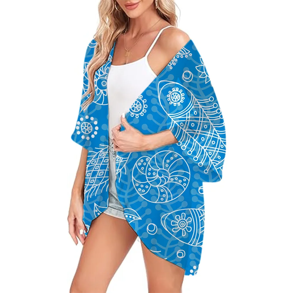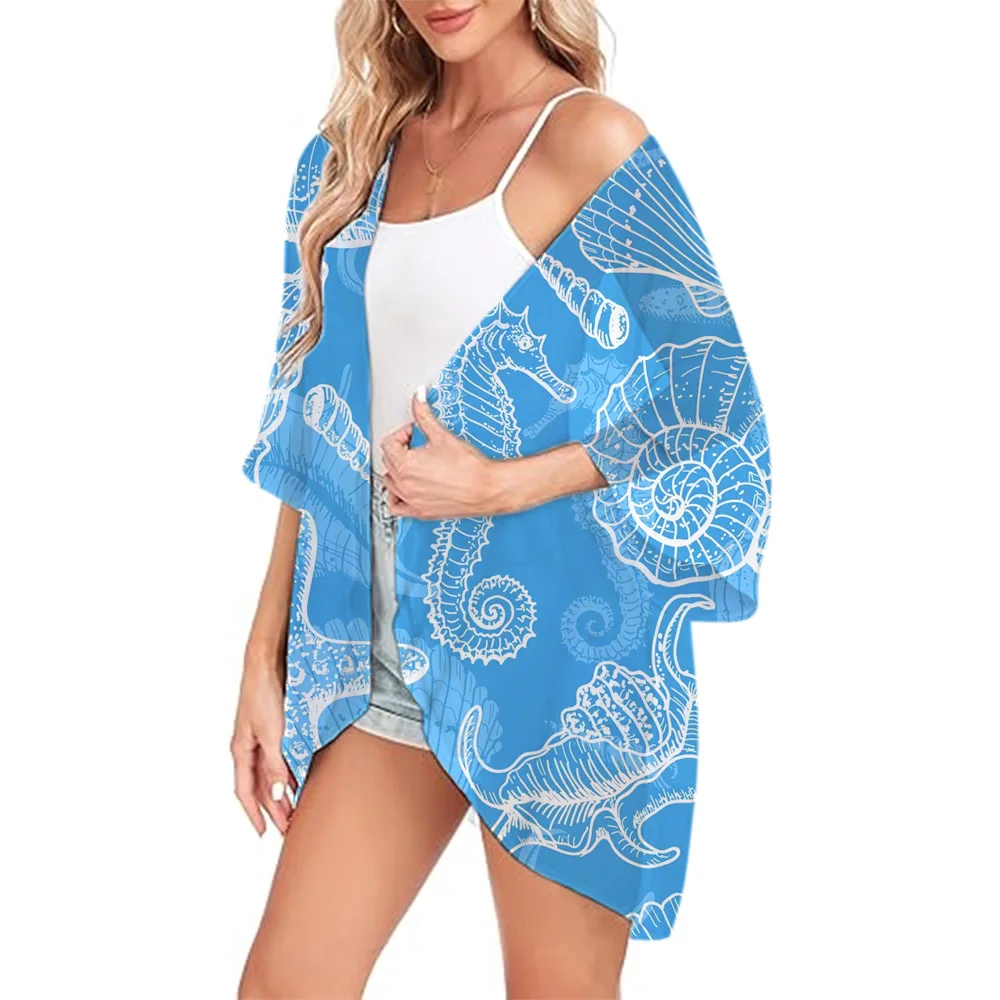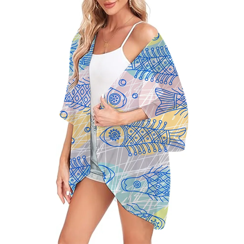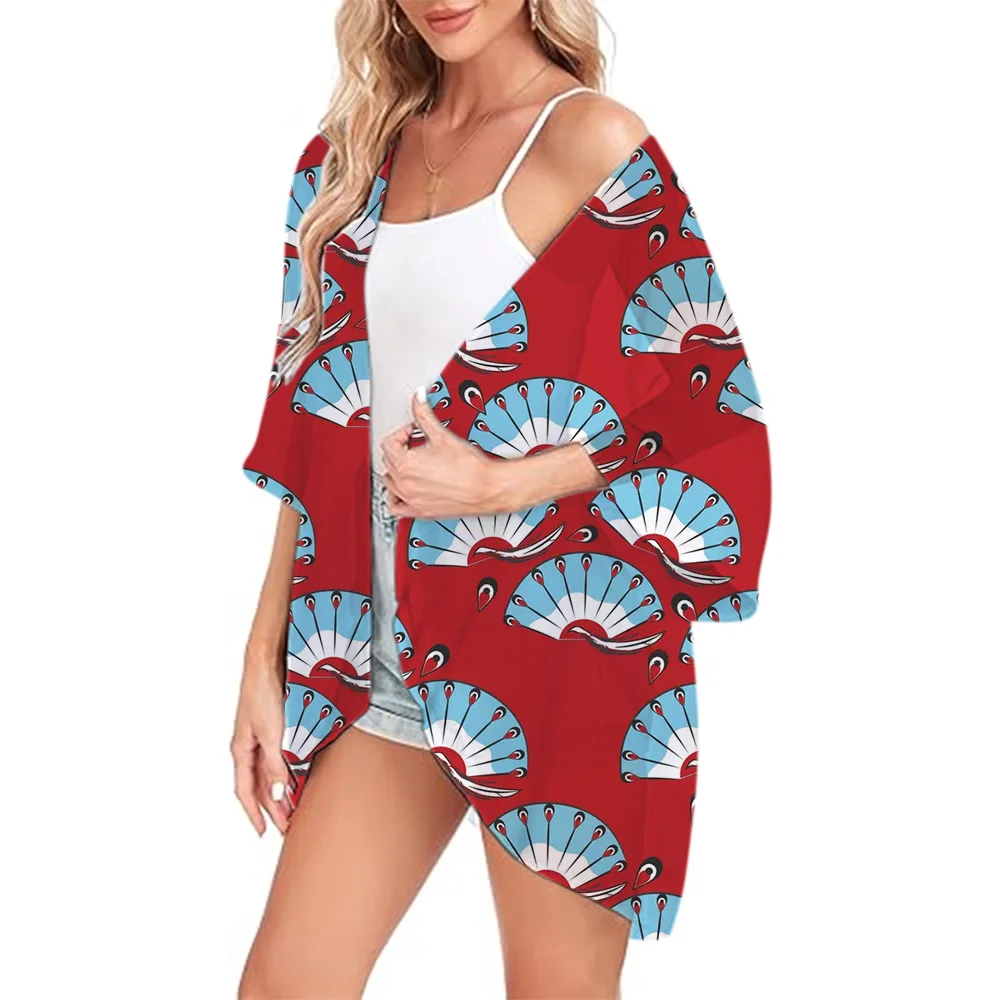 Lightweight Kimono Auspicious Clouds Printed Fashion Chiffon Cover Ups Women's Open Front Shirts Summer Beachwear Cardigan Tops