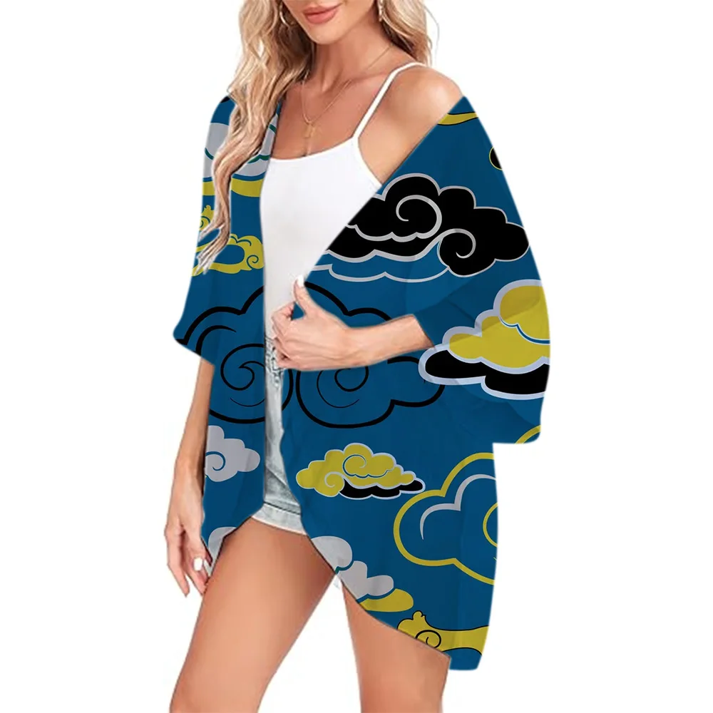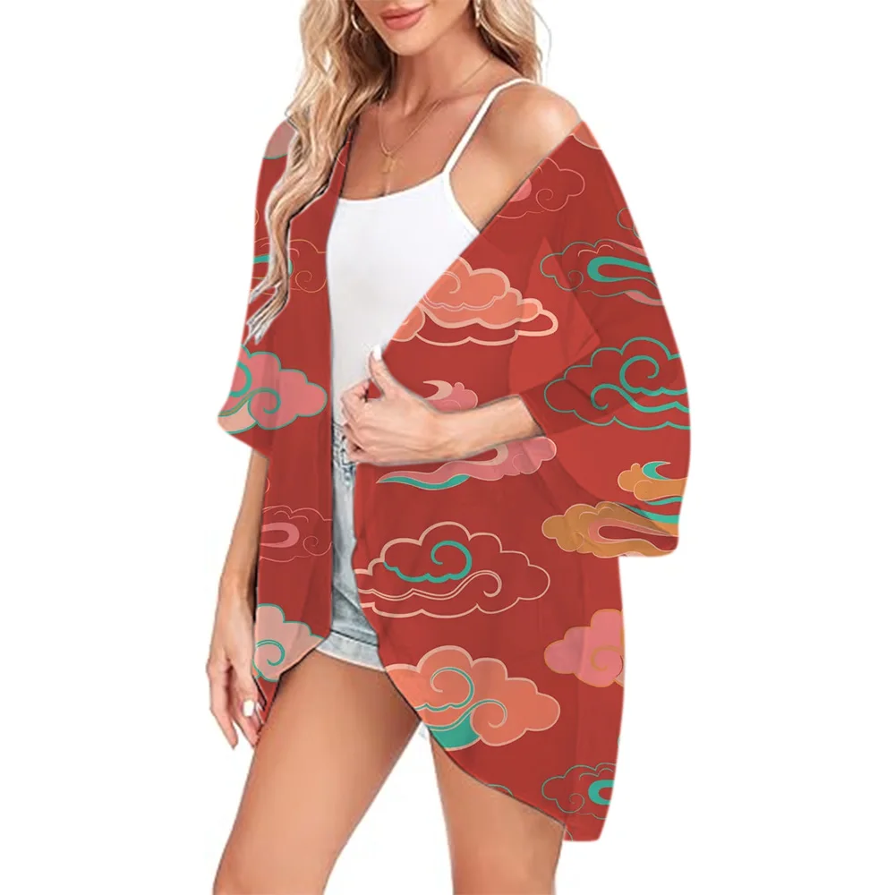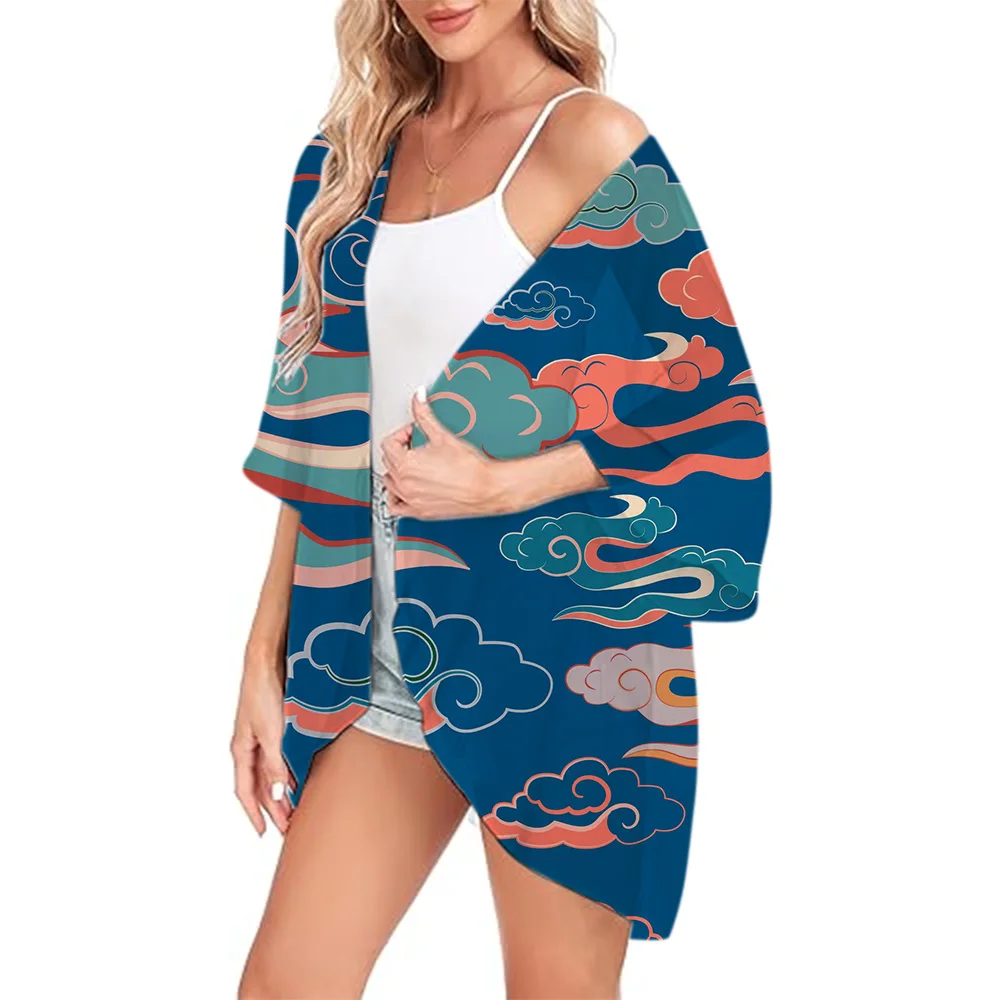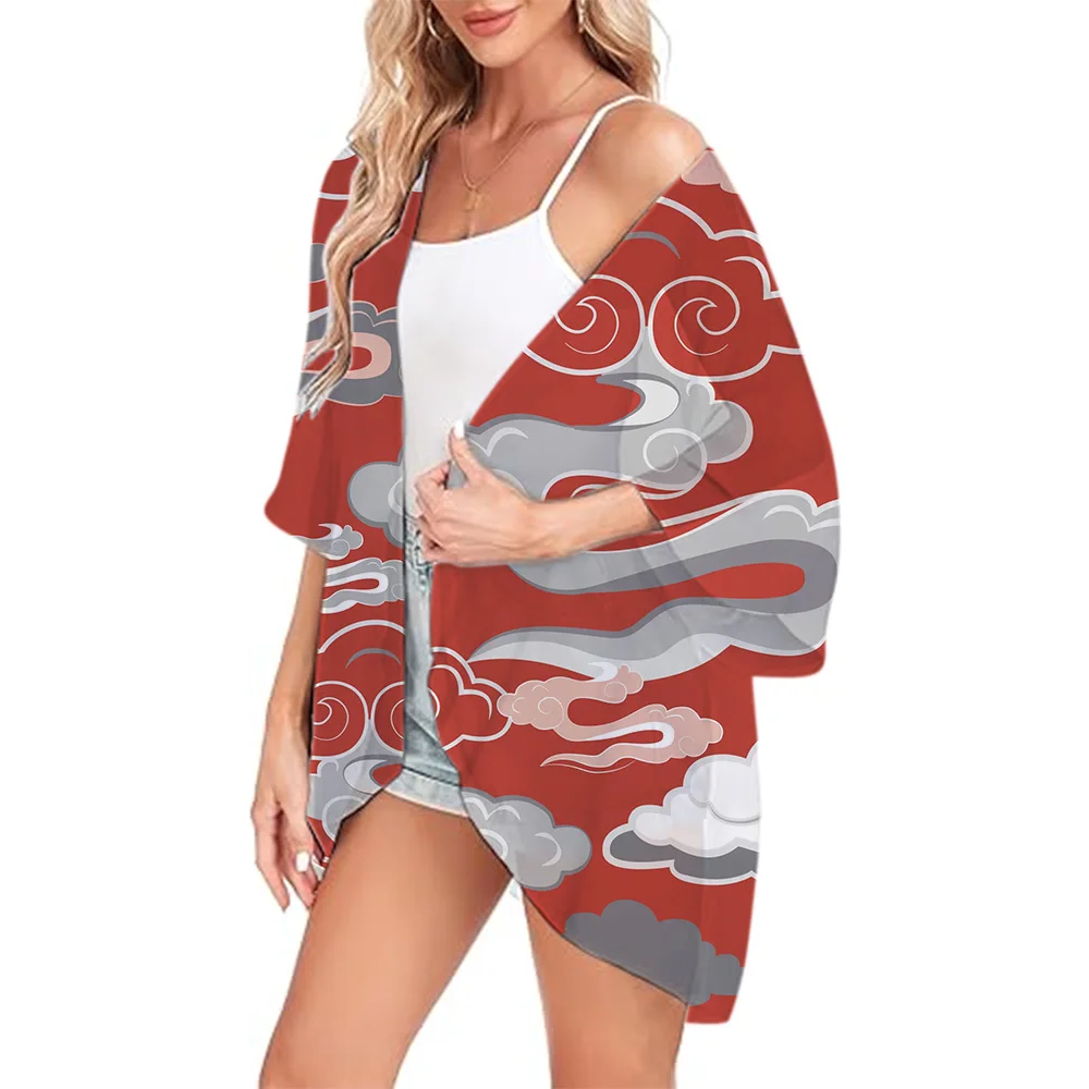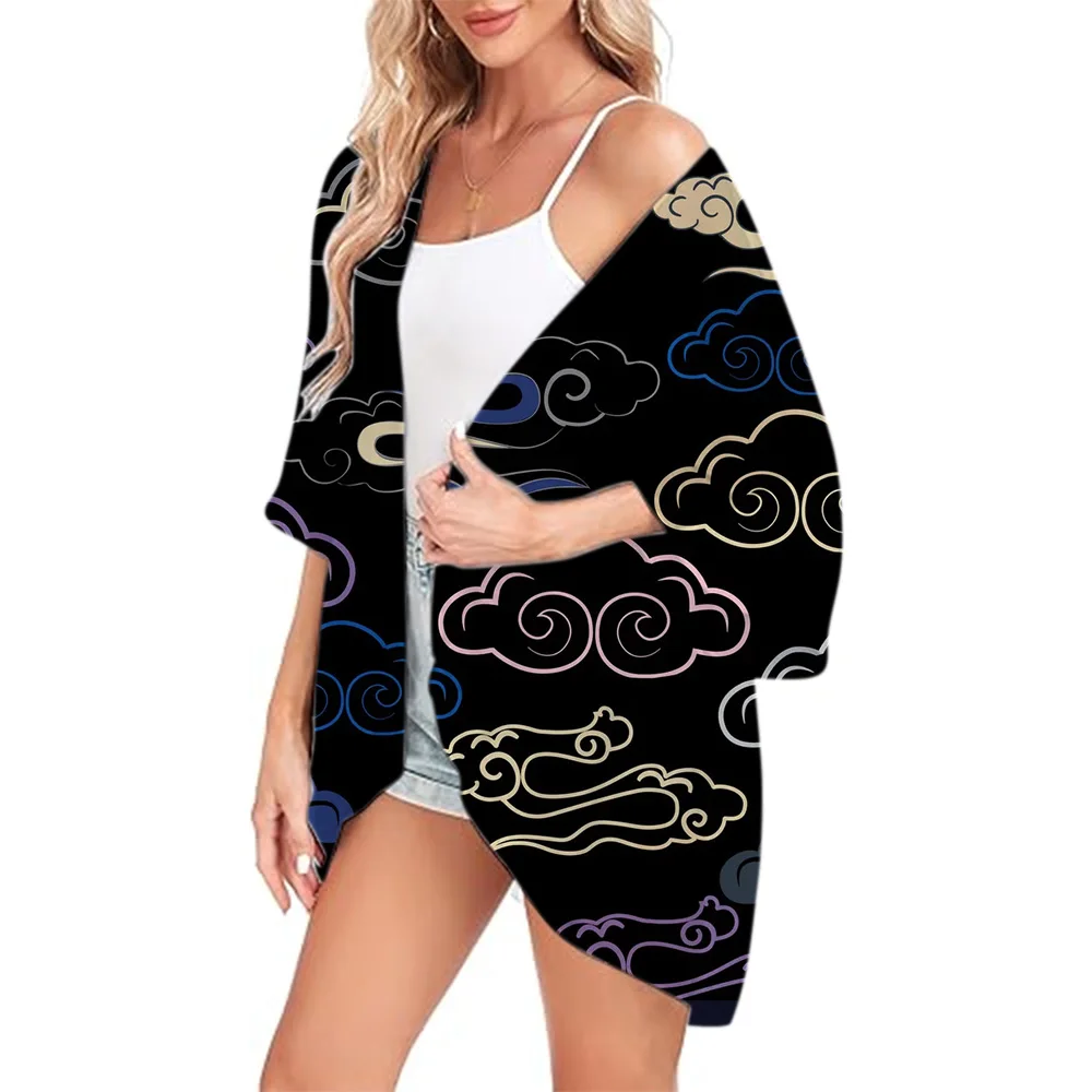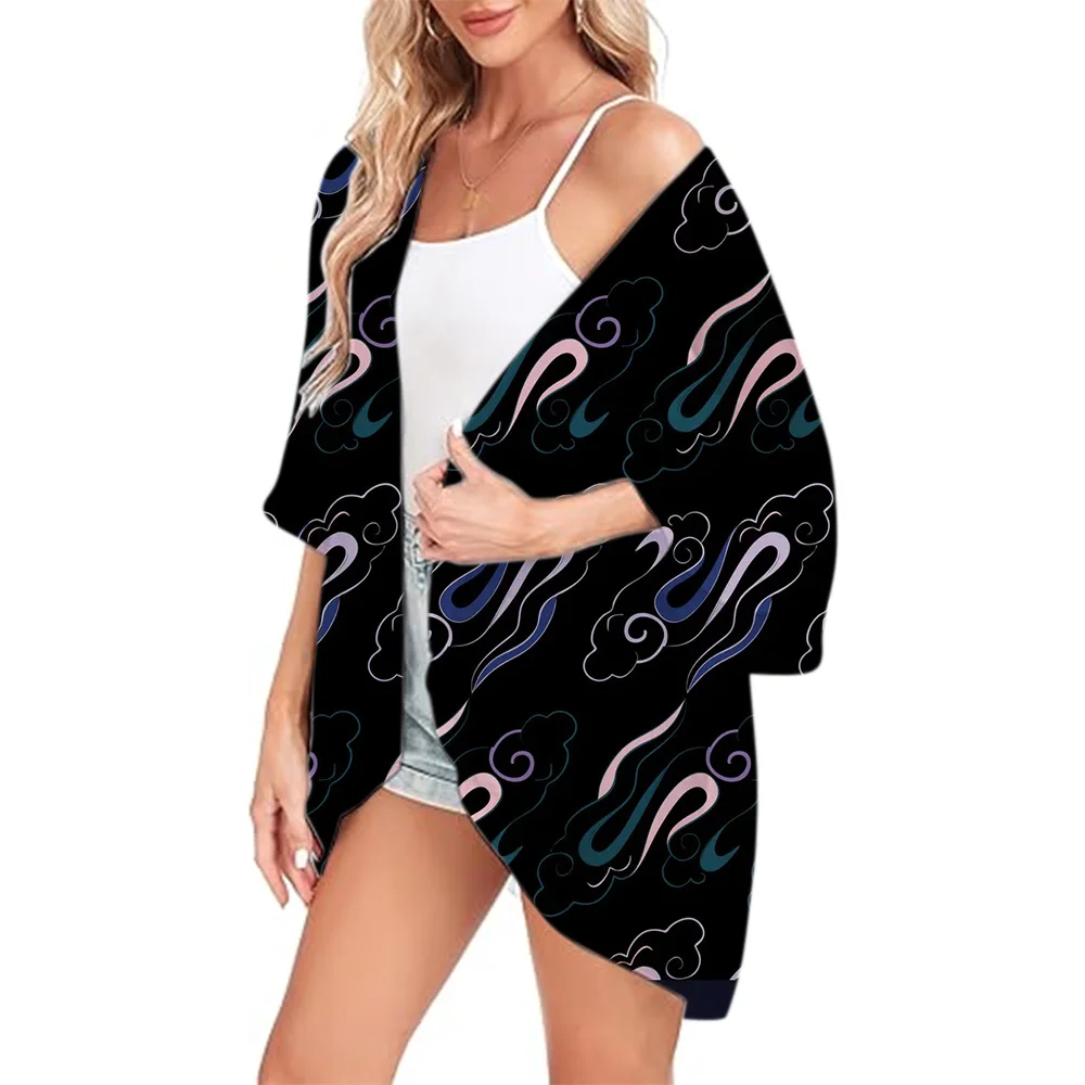 2024 New Women Elegant Kimono Cardigan Black Casual Vacation Style Commute Fashionable Beachwear Chiffon Cover-Up Kimono Summer