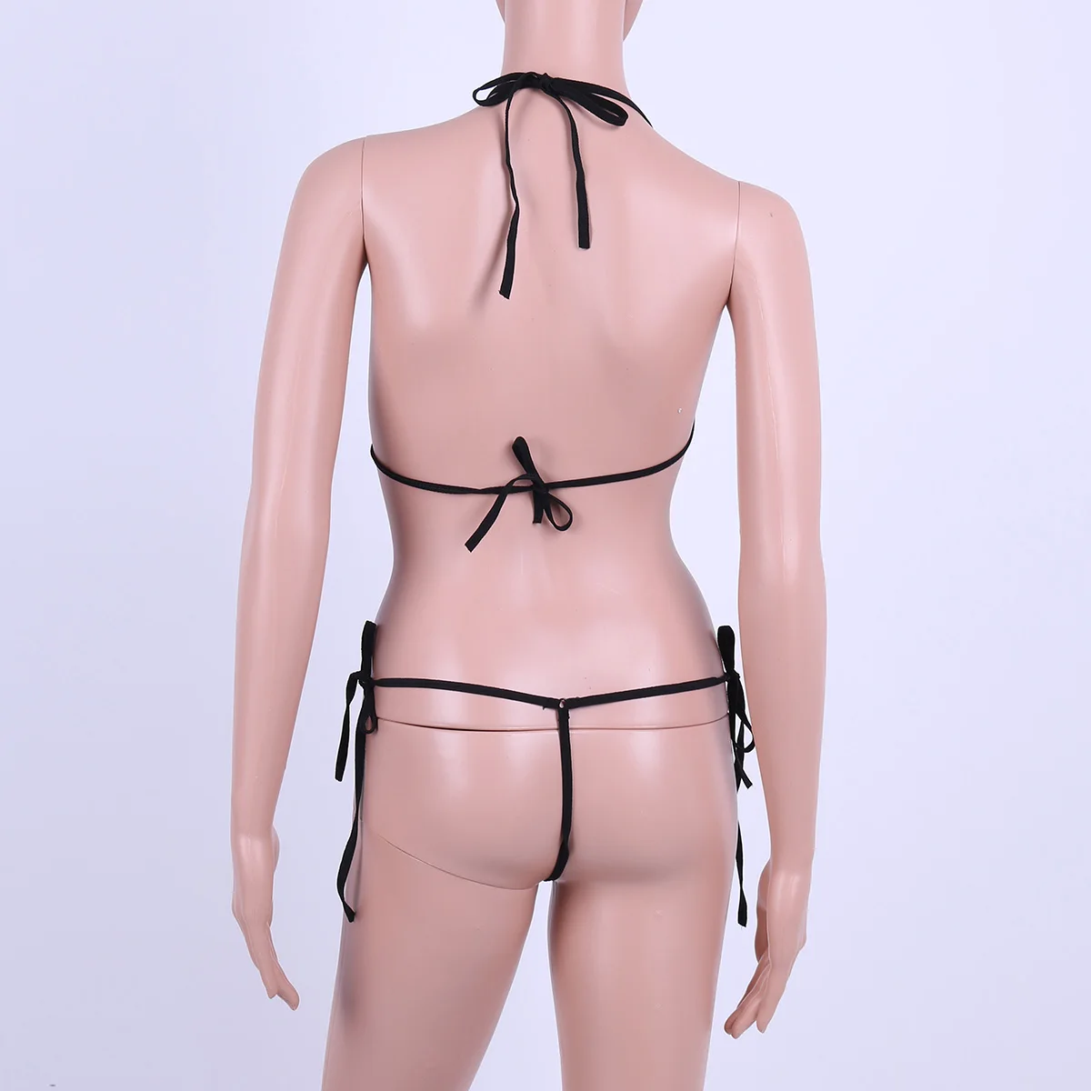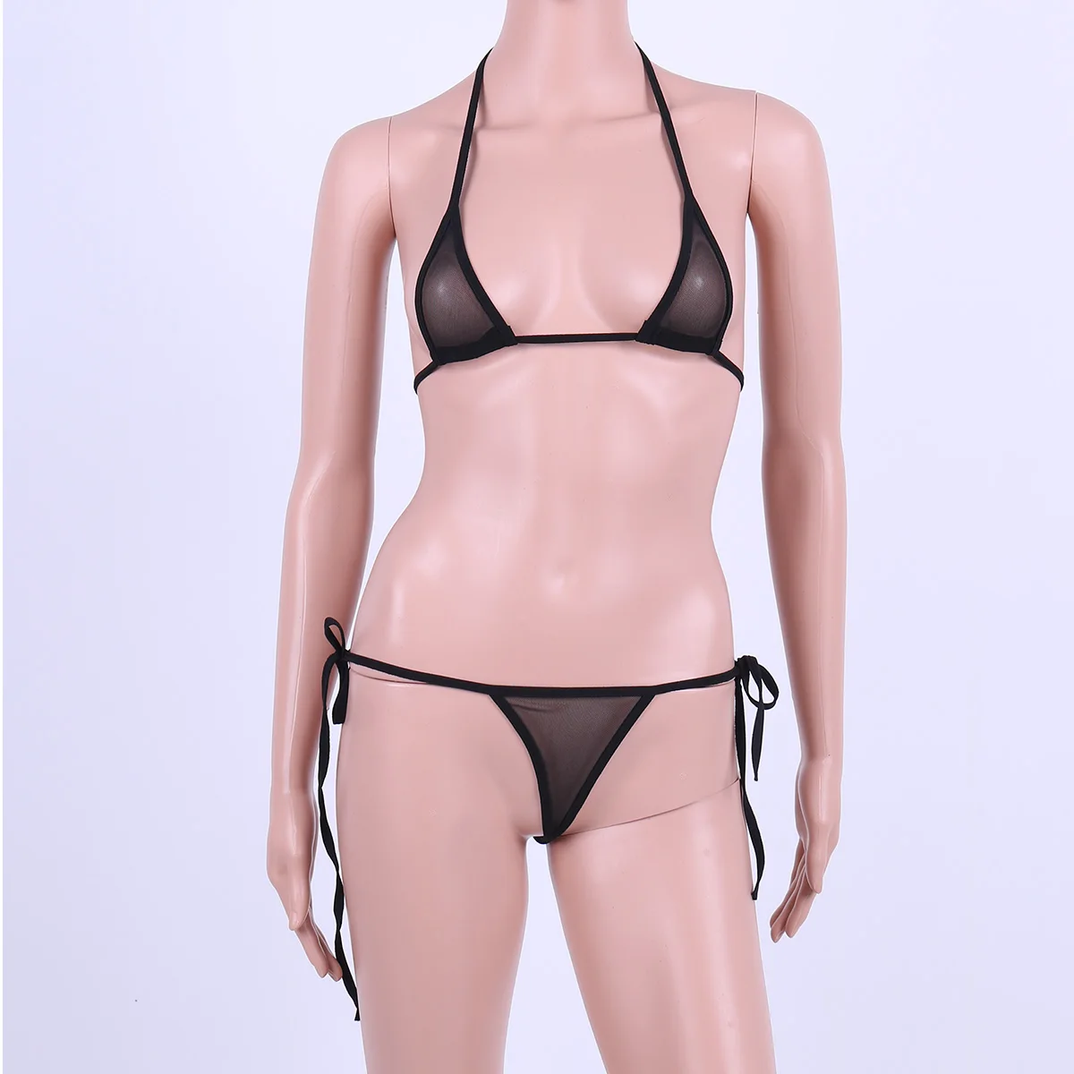 Women's Sheer Mesh Bikini Underwear Sexy Lingerie Set Two Piece Bathing Suit Halter Bra Top with Tie Side Thongs Briefs Swimwear