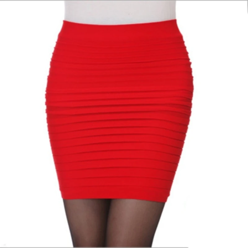 Summer Women Skirt High Waist Candy Color Plus Size Elastic Pleated Sexy Short Skirt