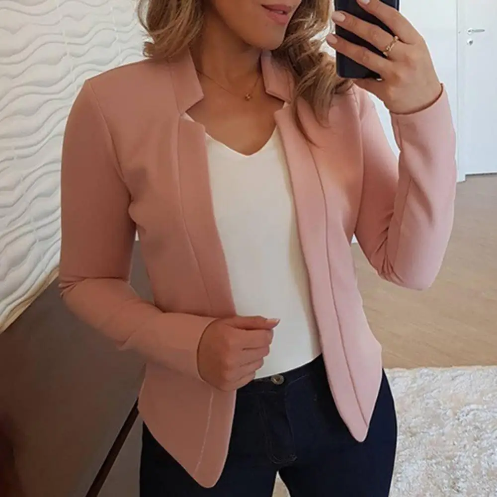 Short Thin Blazer Women Elegant Solid Color No Button Long Sleeve Slim Suit Jacket Coat