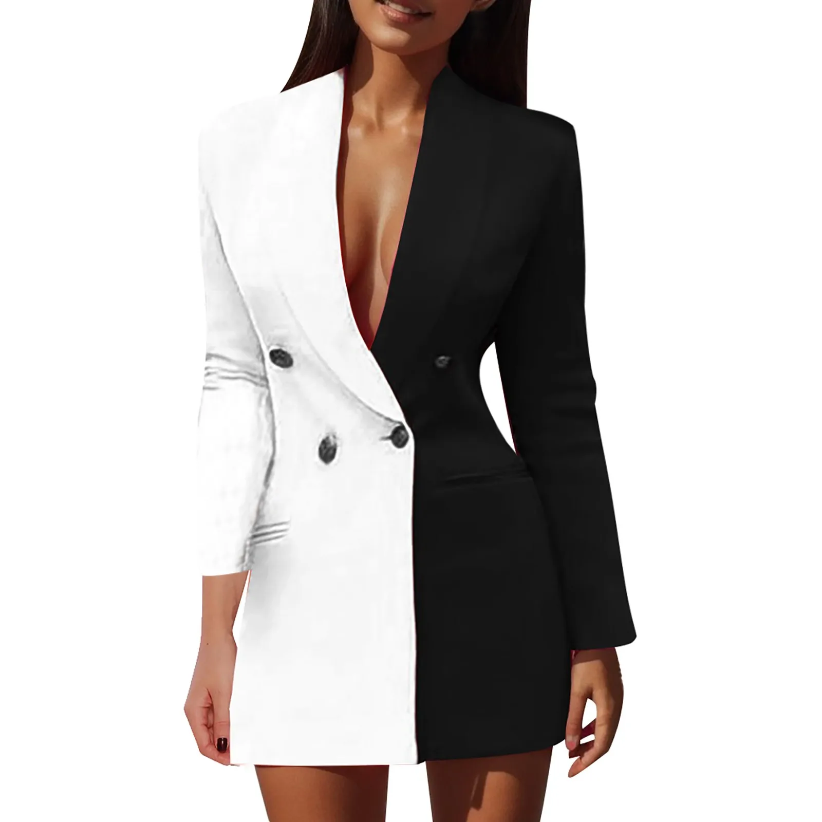 Women Blazer Elegant Office Lady Suit Thin Spring V-neck Female Long Sleeve New Patchwork Slim OL Double Breasted Dress Coat