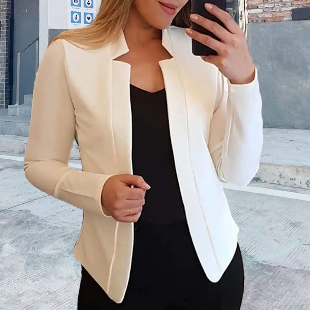 Lightweight Suit Jacket Chic Streetwear Women's Slim Fit with Notched Collar Long Sleeve Open Front Solid Color Suit for Spring