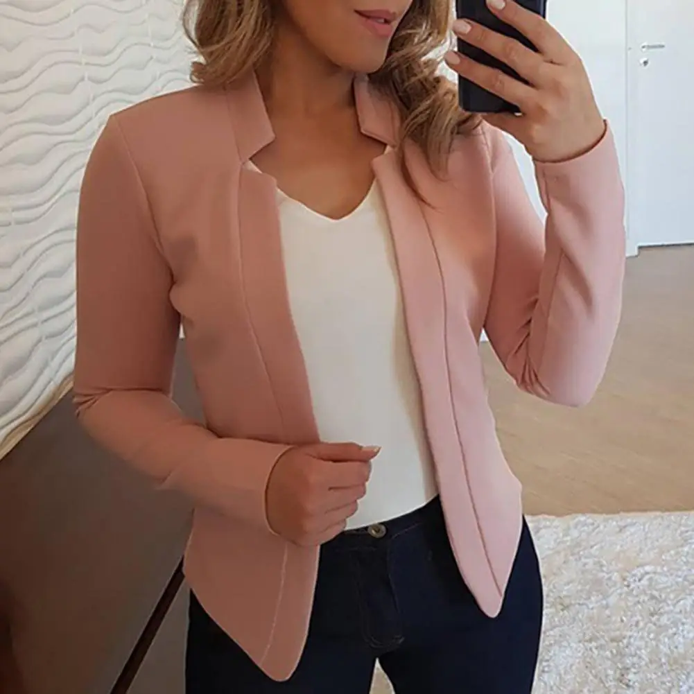 Casual Loose Fit Lightweight Suit Jacket Chic Streetwear Women's Slim Fit with Notched Collar Long Sleeve Open Front for Spring