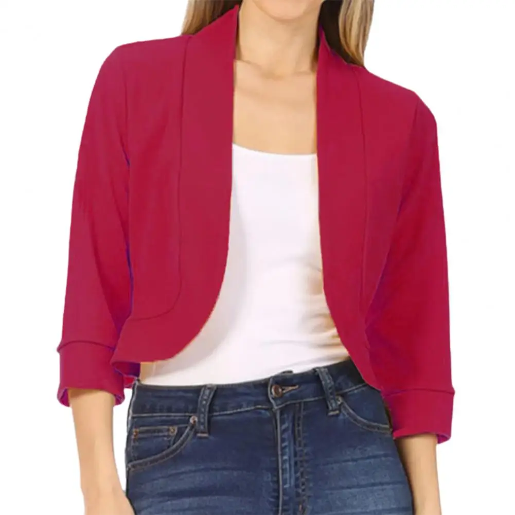 Women Blazer Short Coat Cardigan Open Stitch Loose Spring Fall Jacket Three Quarter Sleeve OL Commute Jacket