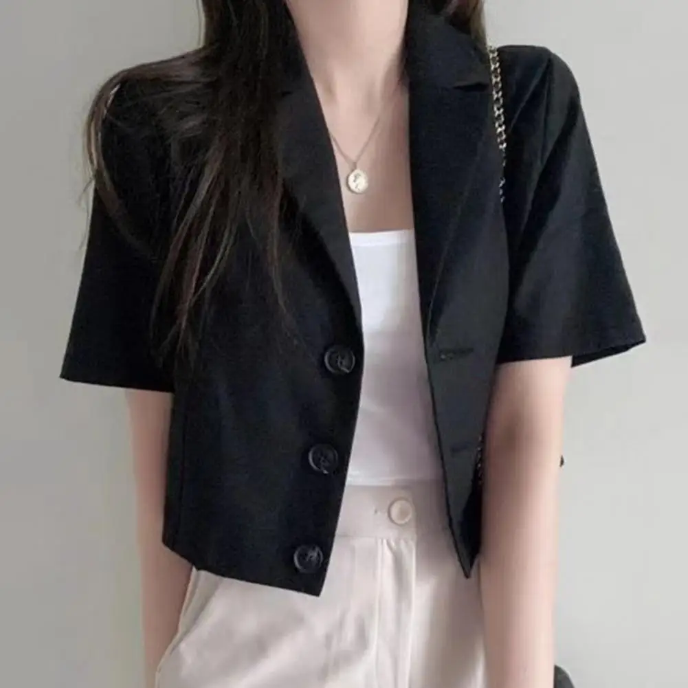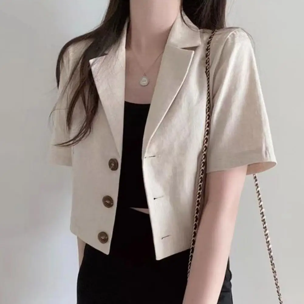 Women Suit Jacket Elegant Women's Short Sleeve Suit Coat Classic Lapel Button Jacket Solid Color Business Outwear for Summer