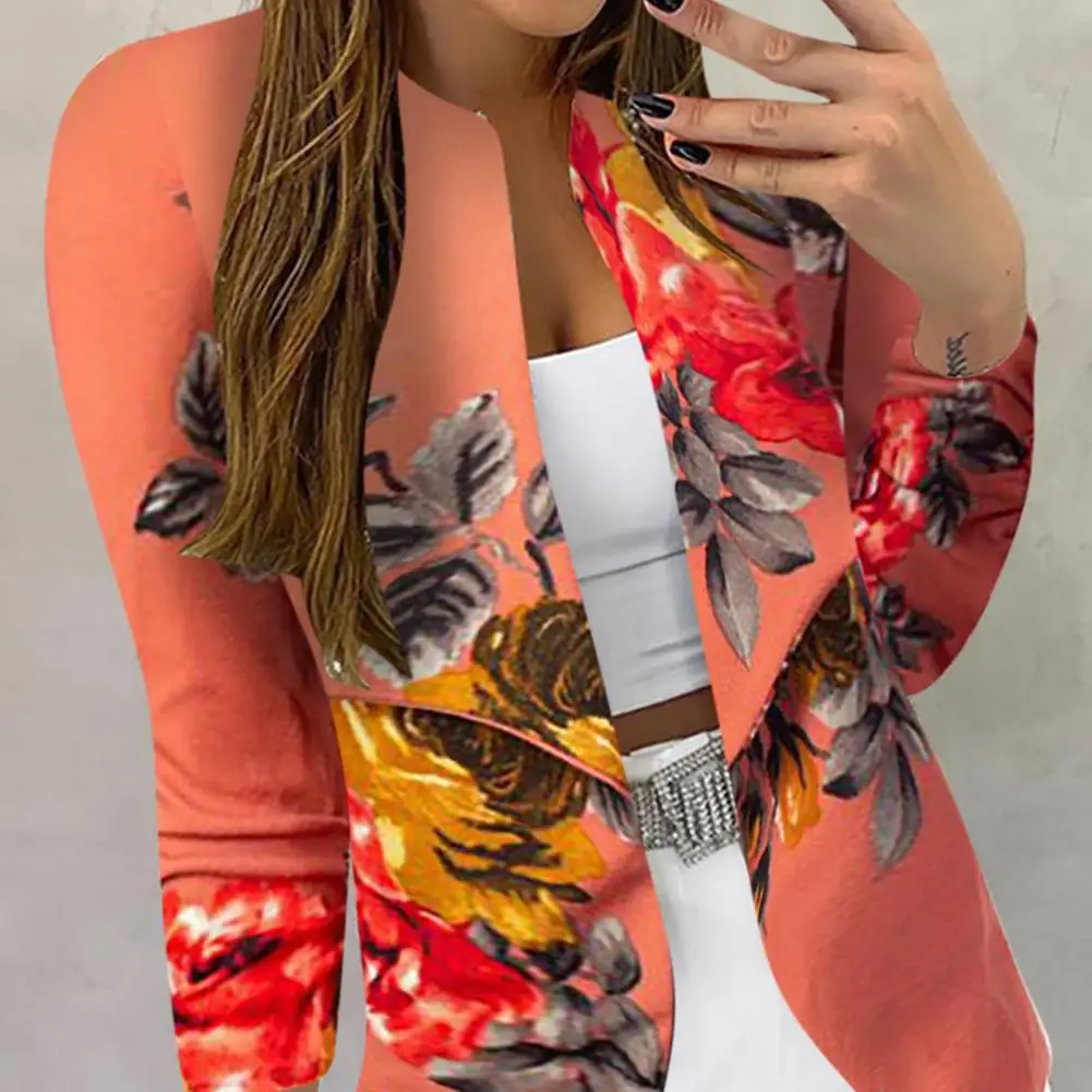 Lady Blazer Floral Print Cardigan Formal Open Stitch Lady Blazer Slim-fitting Suits Coat For Office Daily Wear