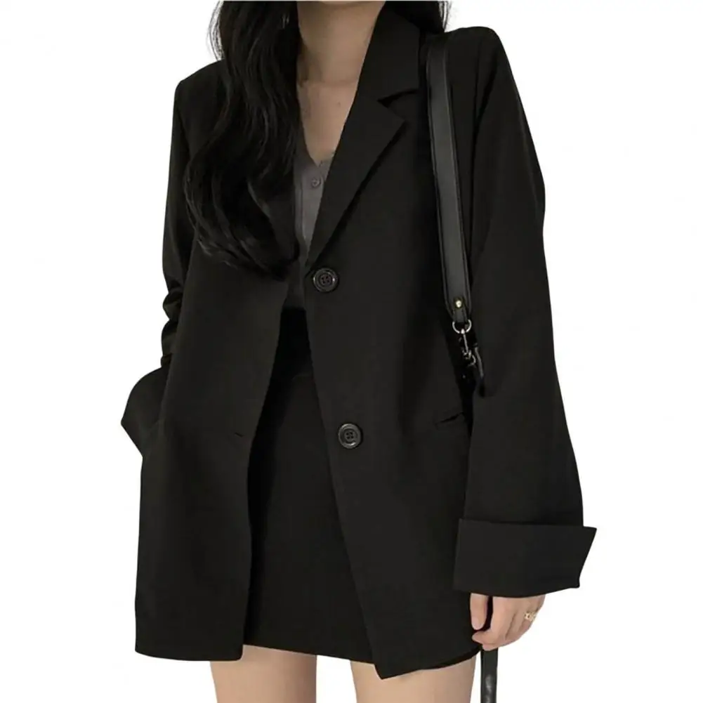 Women Blazer Turn-Down Collar Single Breasted Black Blazer Suit Jacket Coat
