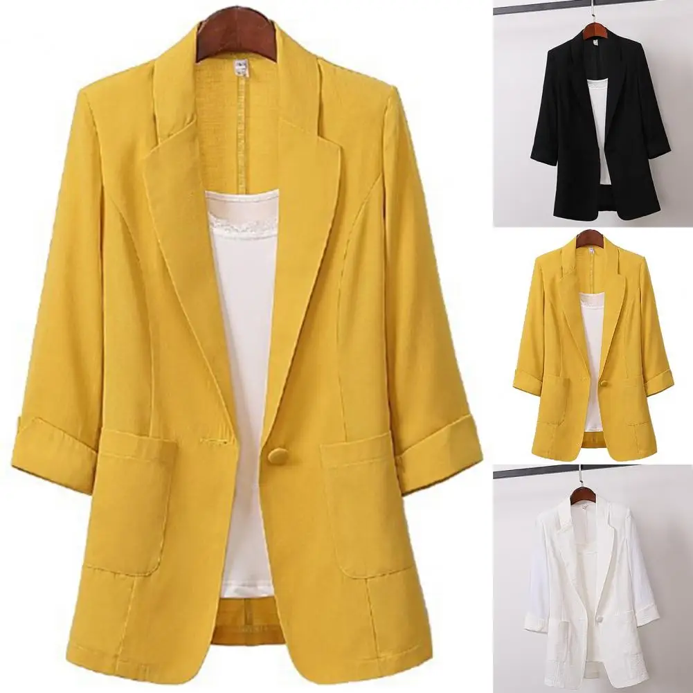 Office Lady Blazer One Button Suits Jacket Solid Color Lapel Blazer