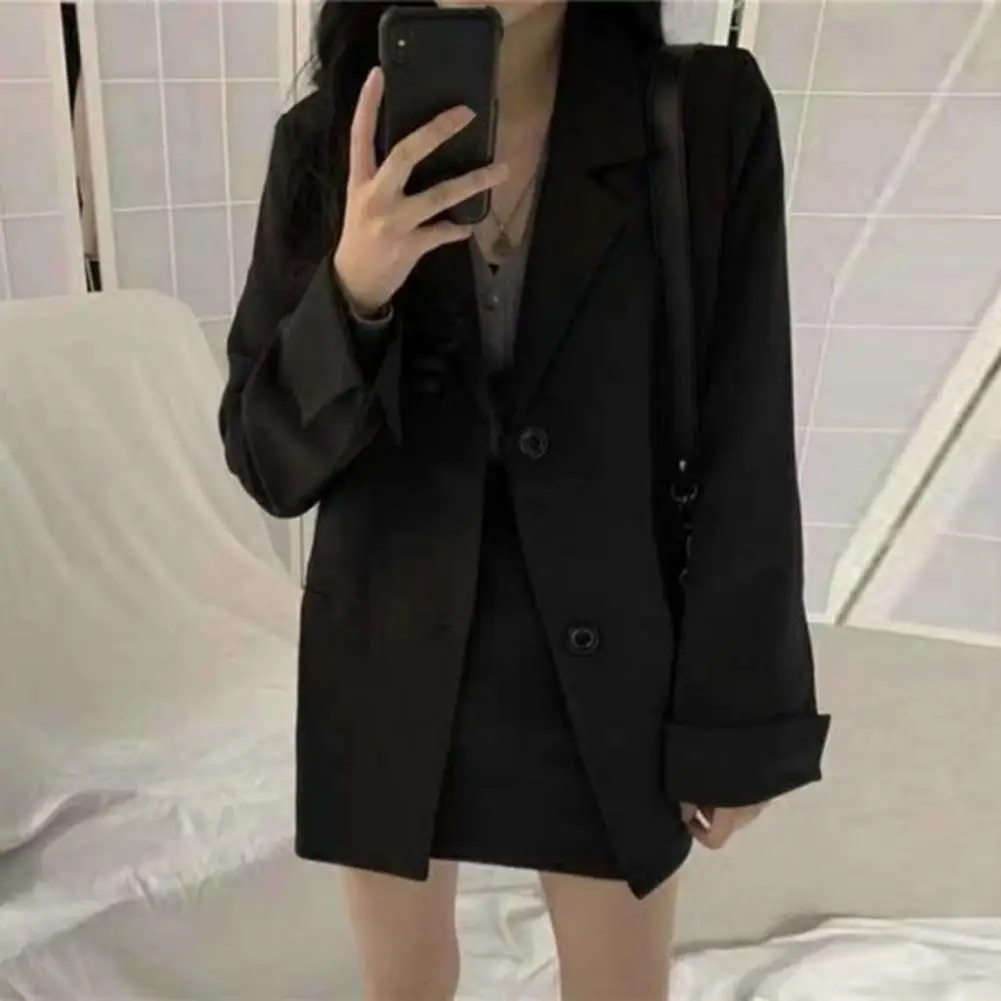 Spring And Autumn Women's Casual Solid Color Double Breasted Loose Long Jacket Suit Coat Business Outwear