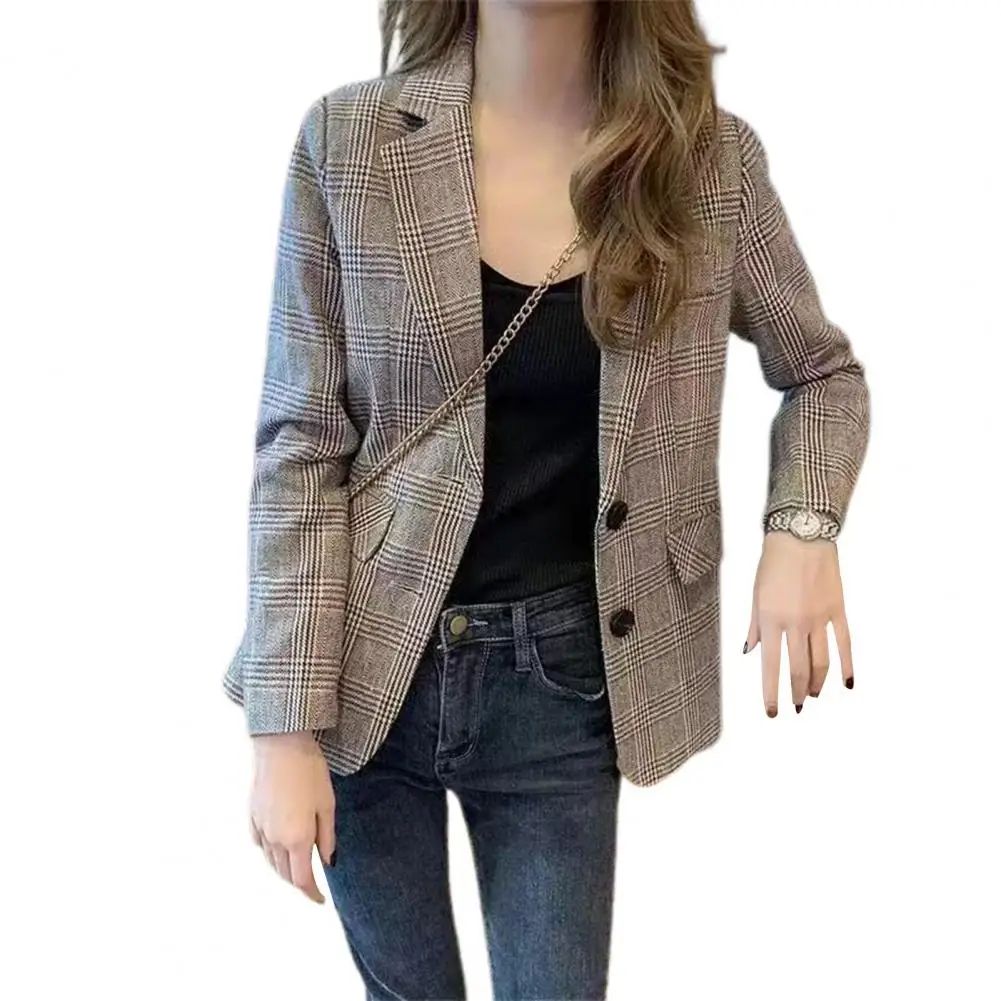 Women Suit Coat Suit Jacket Plaid Print Women's Suit Coat with Lapel Flap Pockets Stylish Business Outwear for Spring Autumn