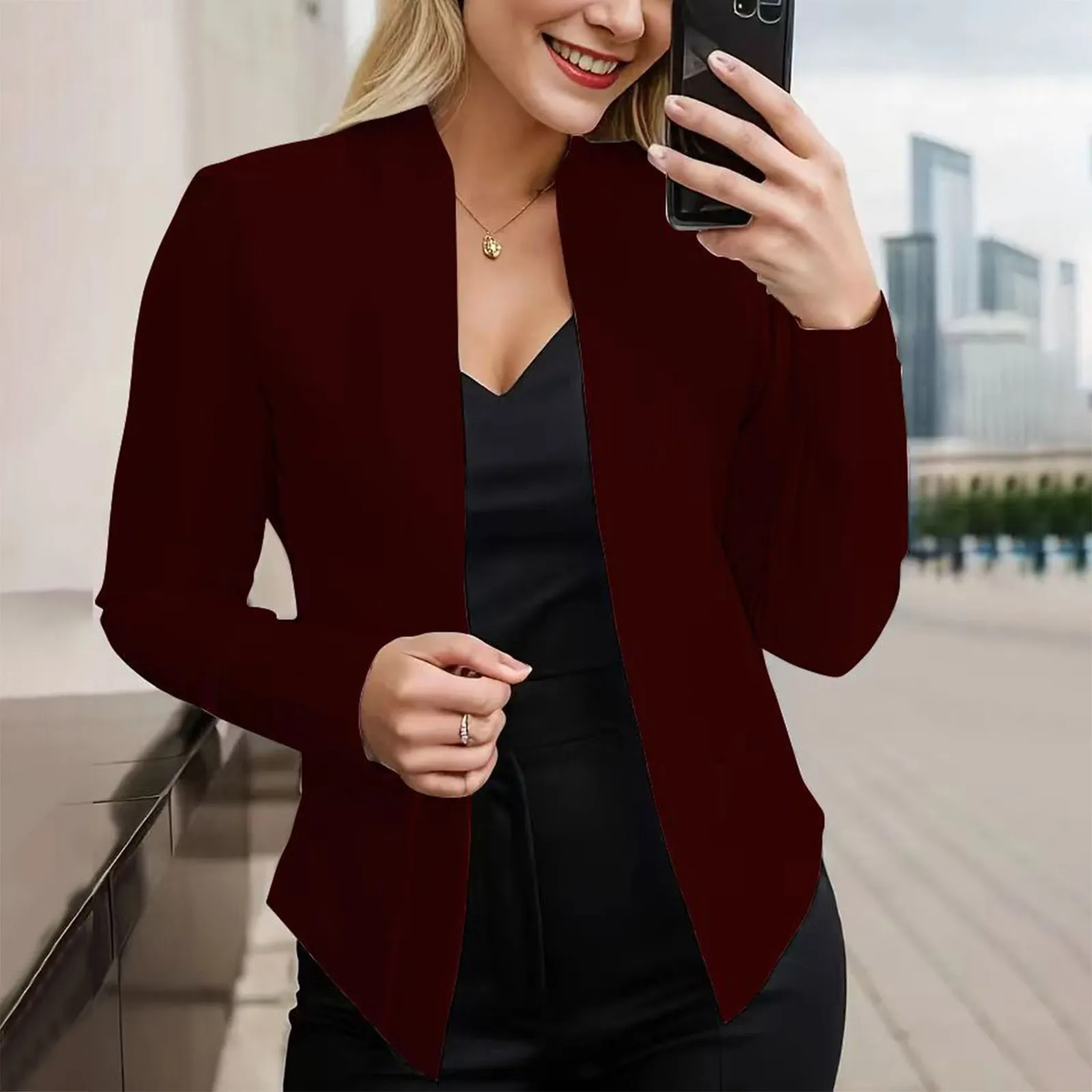 Fashion Jacket Blazer Solid Color Thick No Button Women Open Front Casual Jacket Blazer Business Plus Size Jacket Suit Outerwear