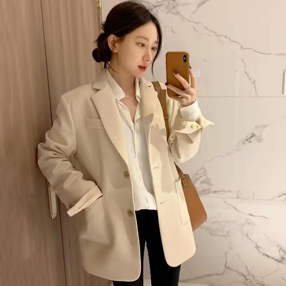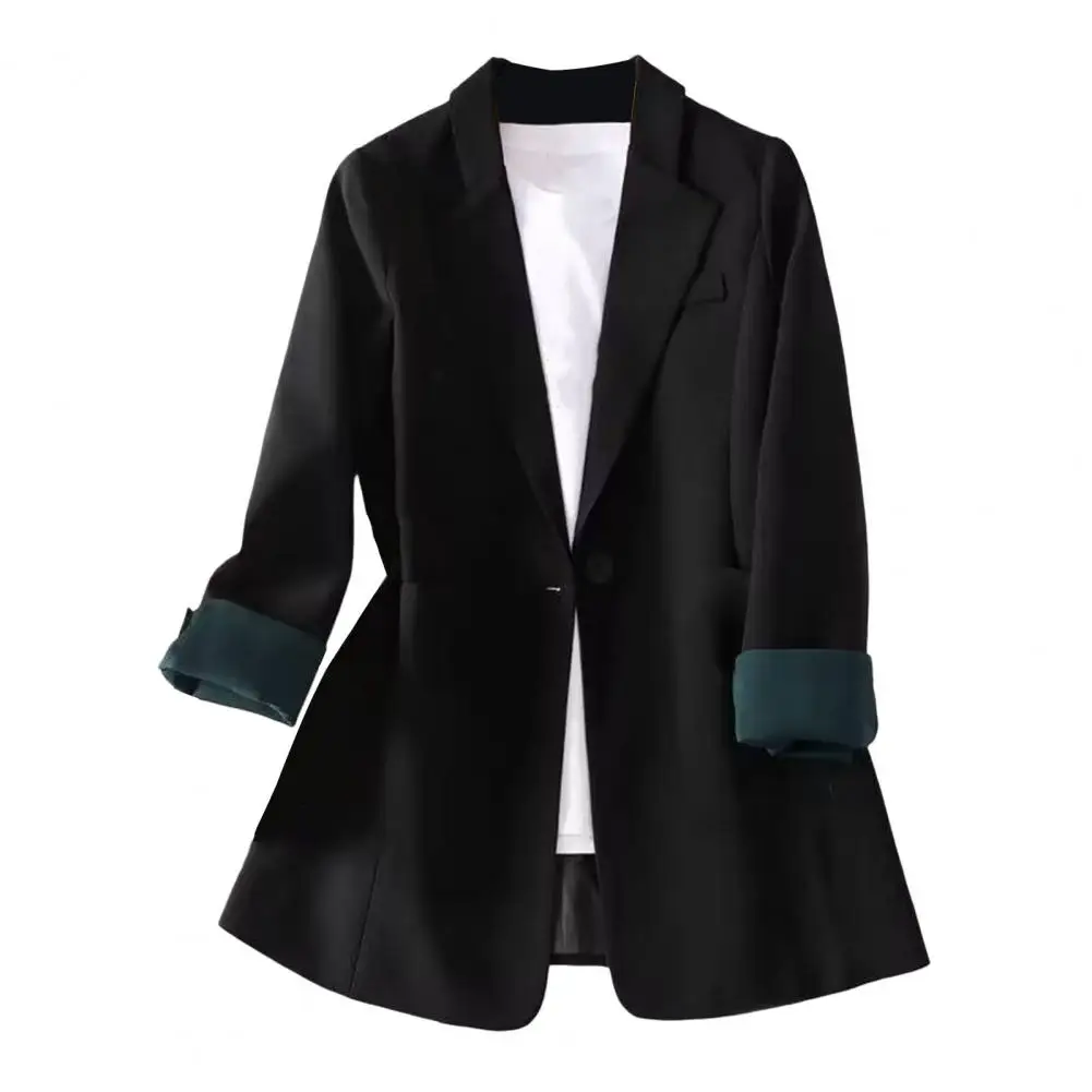 Business Suit Coat Elegant Lapel Suit Coat with Pockets for Women Long Sleeve Single Breasted Jacket Solid Color for Leisure