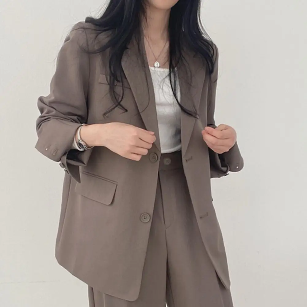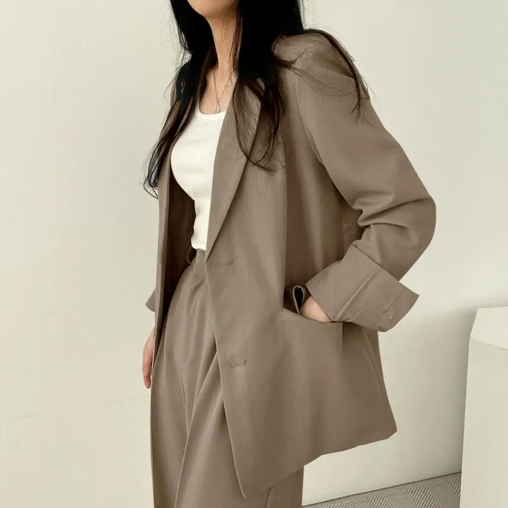 Solid Color Stylish Women's Spring Autumn Lapel with Flap Pockets Solid Color Loose Fit Casual Workwear Coat for Office