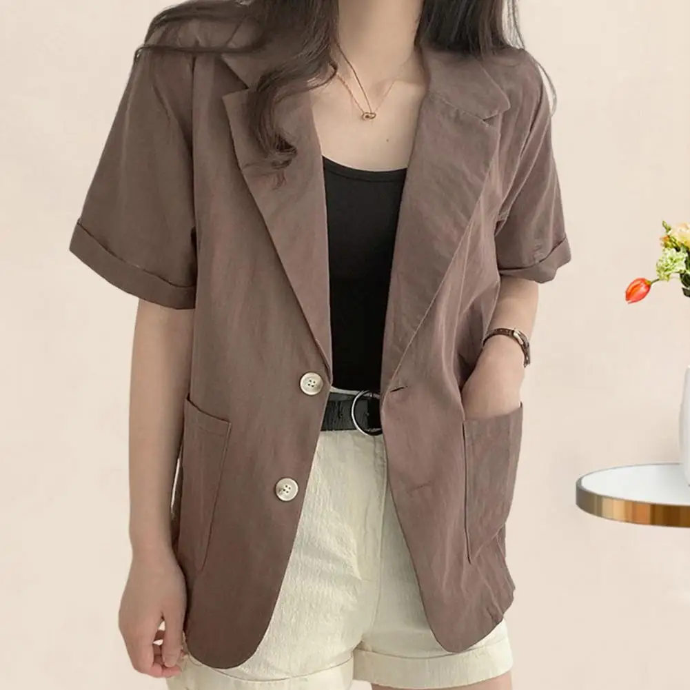 Women Suit Coat Loose Fit Short Sleeve Summer Suit Coat with Pockets Business Leisure Jacket for Men Loose Fit Women Suit Jacket