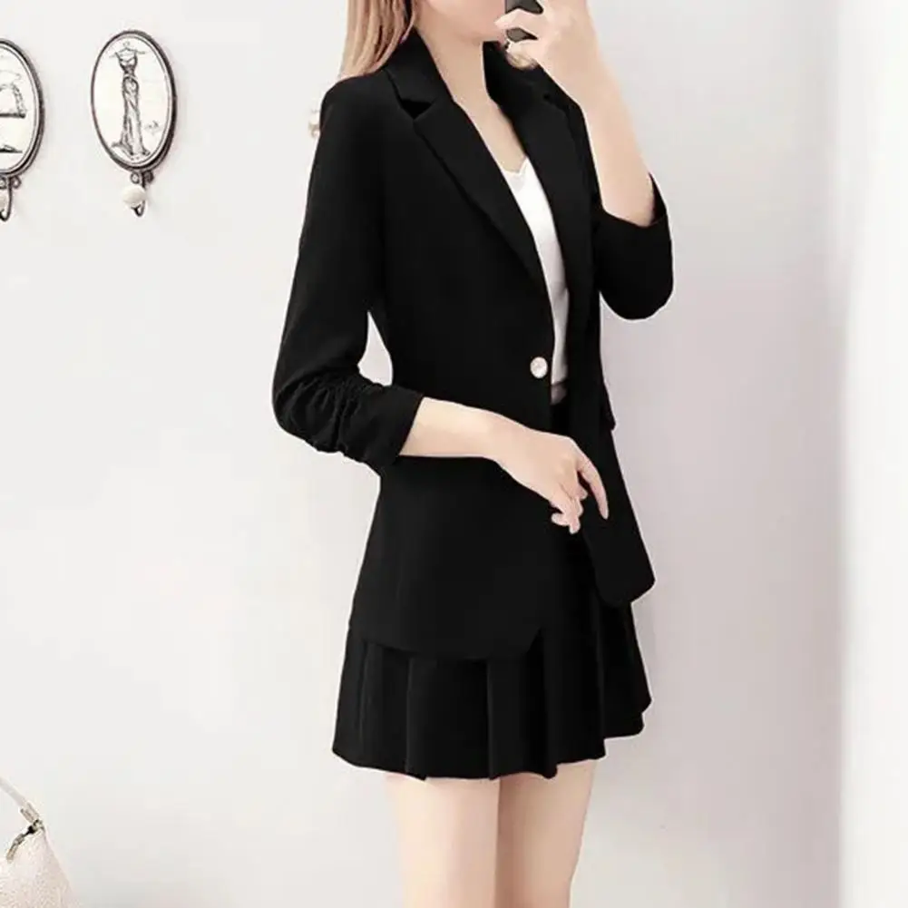Women Suit Set Women's Commuting Style 2pcs/set Suit with Long-sleeved Jacket Pleated Mini Skirt Solid Color Set for Spring