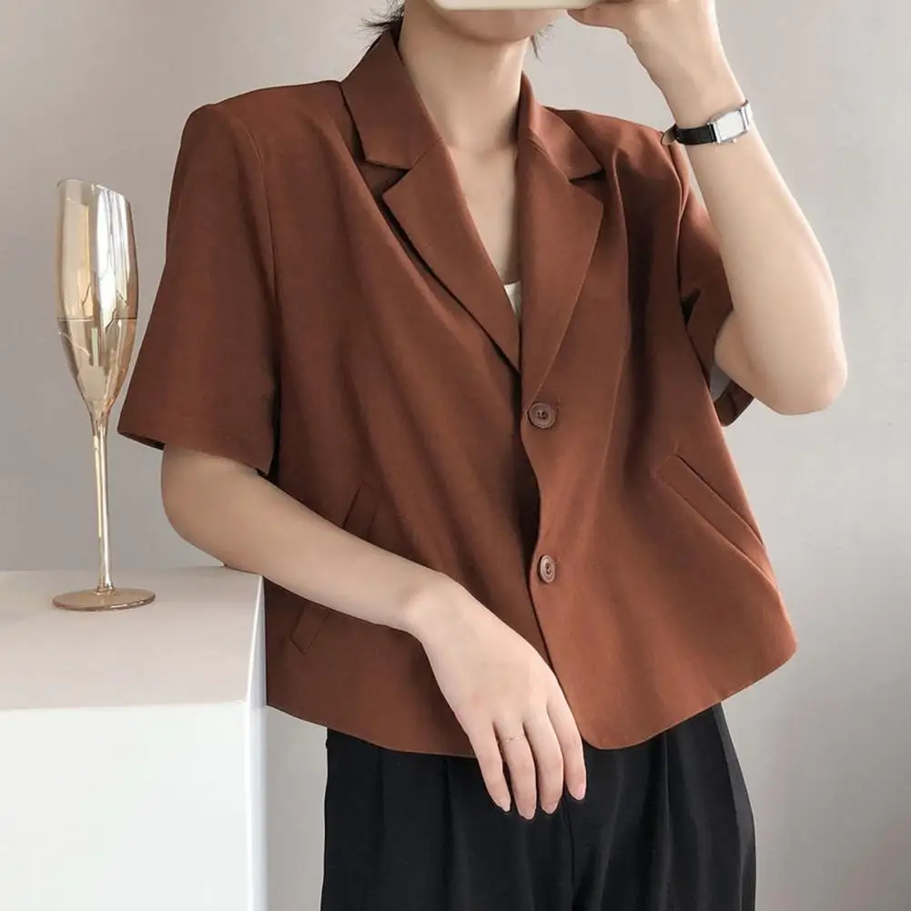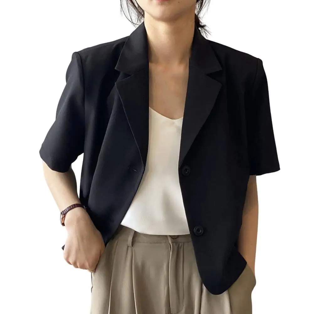 Blazers Women S-4Xl Elegant Solid Suit Jackets Office Lady Korean Short Sleeve Single Breasted Casual Blazer Casual Coat