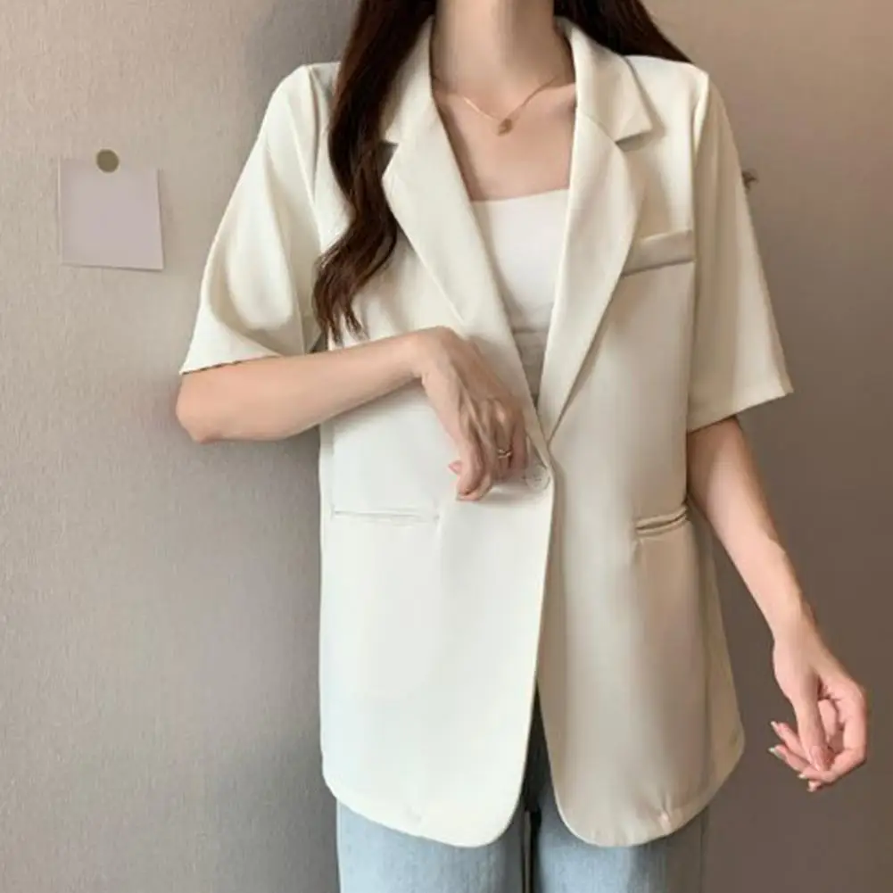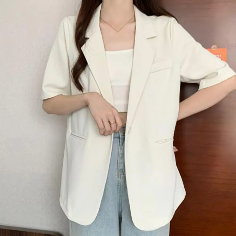 Short-sleeve Suit Coat Women Short-sleeve Suit Coat Versatile Women's Short-sleeved Suit Coat Solid Color Button for Business