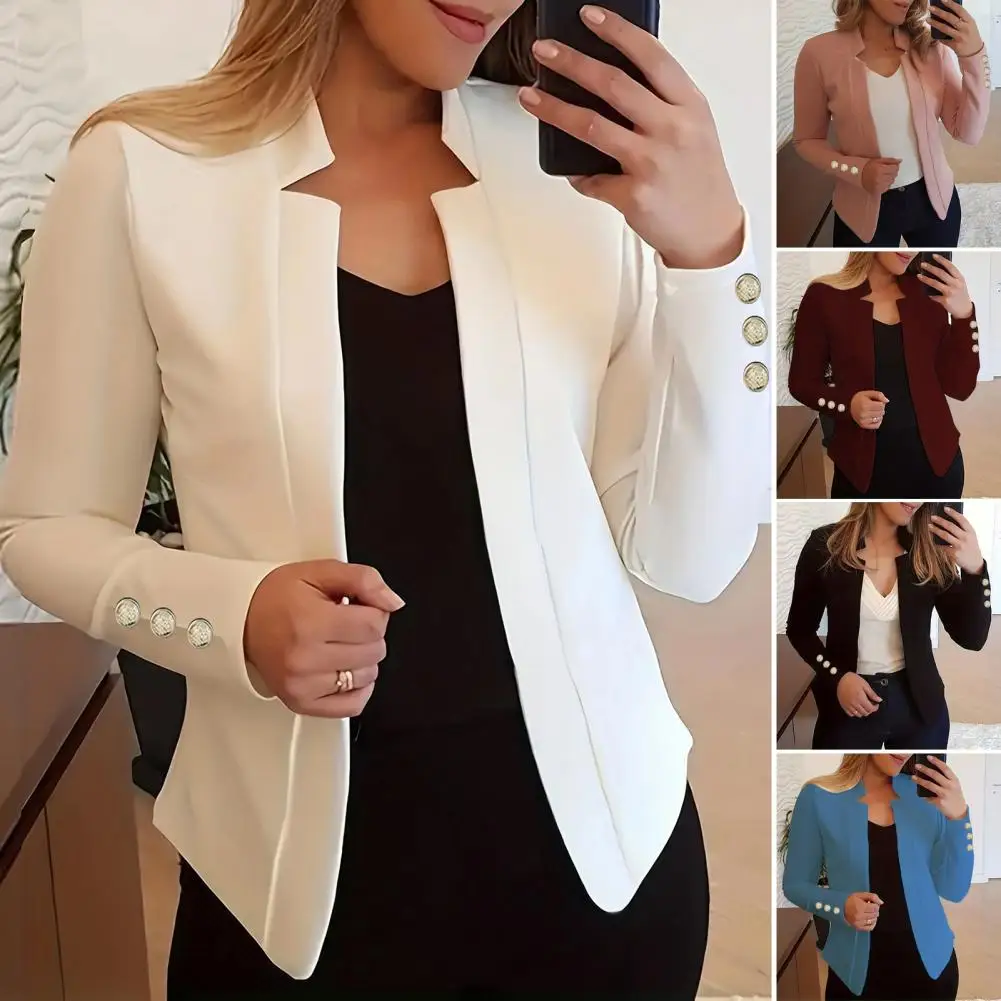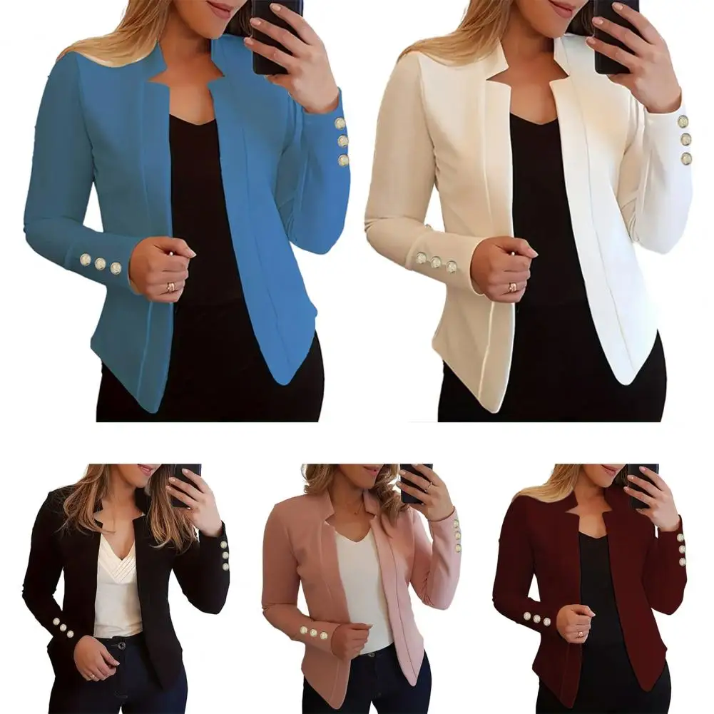 Suit Coat Notched Collar Long Sleeve Suit Jacket Slim Fit Open Front Casual Business Cardigan