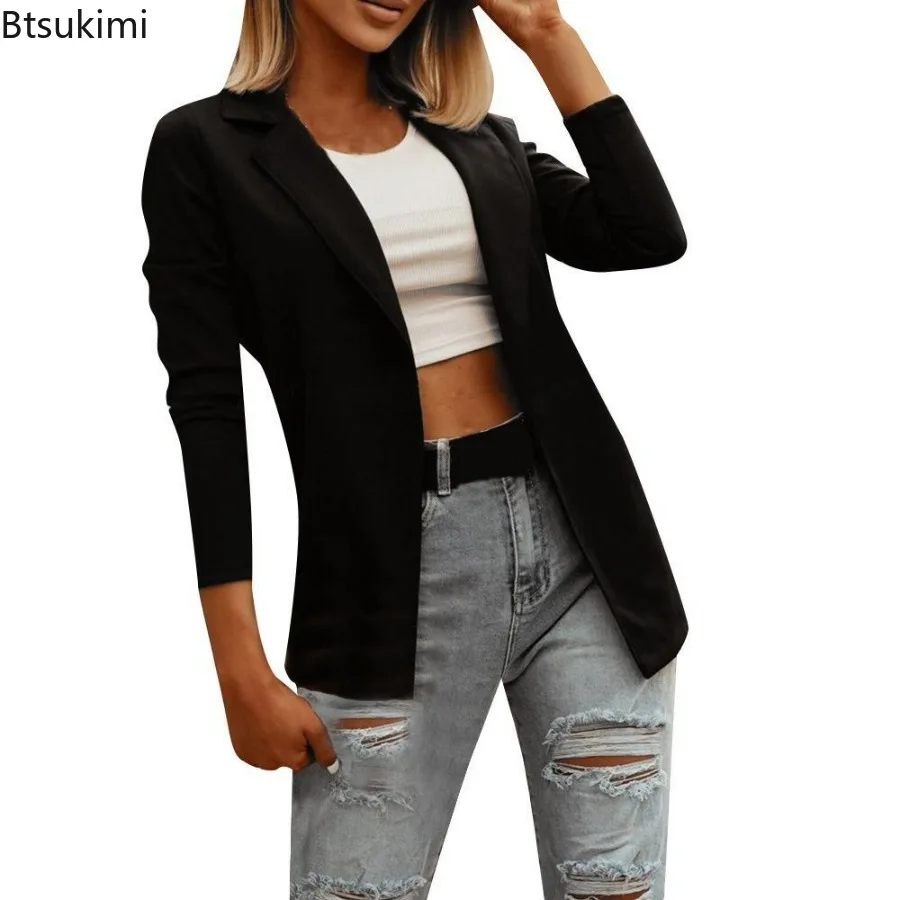 2024 Women's Fashion Lapel Slim Cardigan Blazer Jacket Suit Solid Office Suit Coat Ladies Coat Slim Elegant Blazers Women Tops