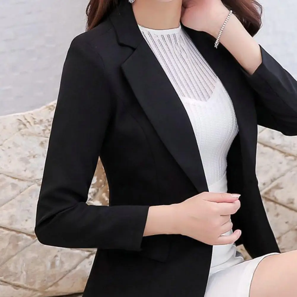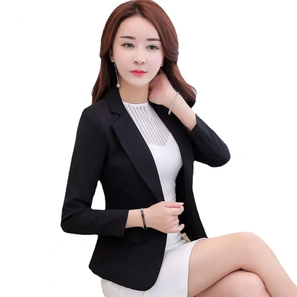 Spring Women Blazer Jacket Long Sleeves Single Button Slim Turndown Collar Suit Coat Streetwear