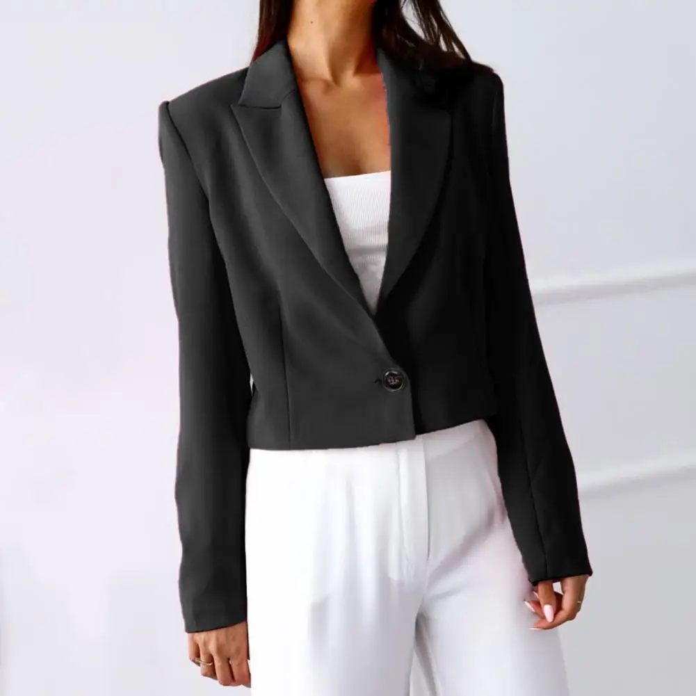 2022 Chic Women BlazerSingle Button Lapel Short Type Women Office Blazer Elegant Office Short Coat Office Blazer Cardigan Coat