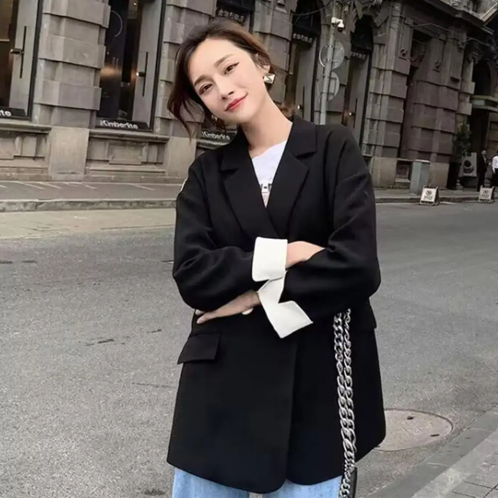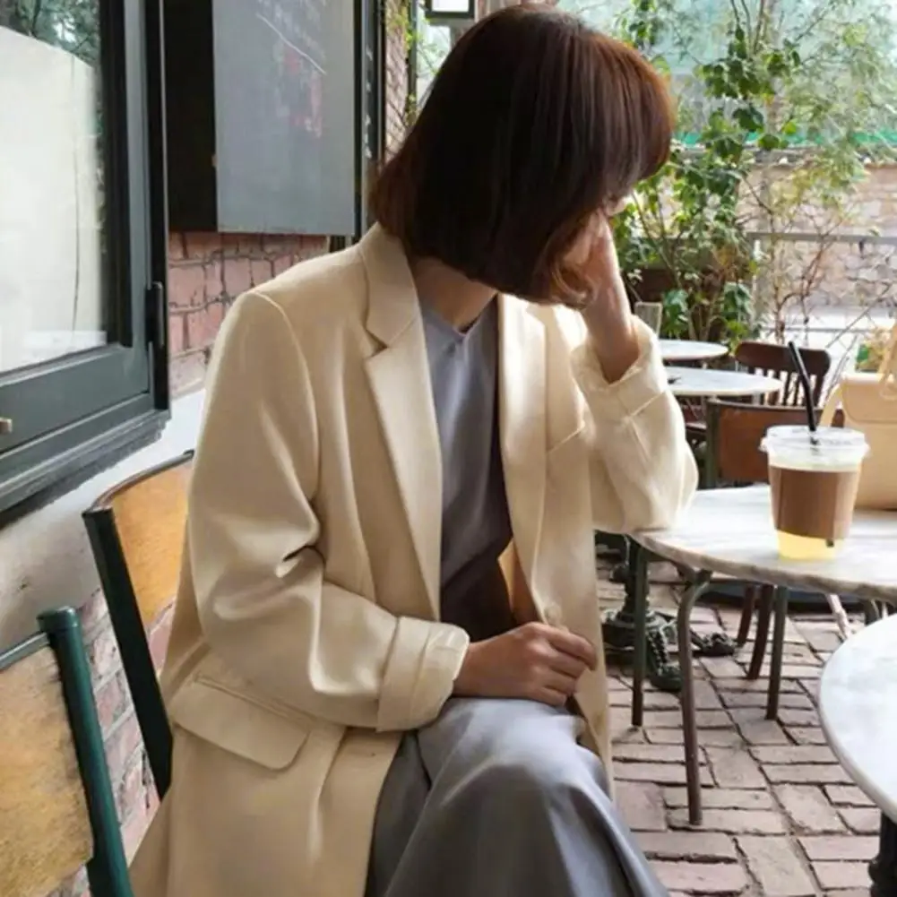 Business Jacket for Women Elegant Lapel Suit Coat with Pockets for Women Long Sleeve Single Breasted Jacket Solid Color Loose
