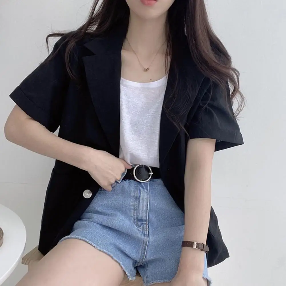 Women Suit Coat Loose Fit Women Suit Coat Loose Fit Short Sleeve Summer Suit Coat with Pockets Business Leisure Jacket for Men