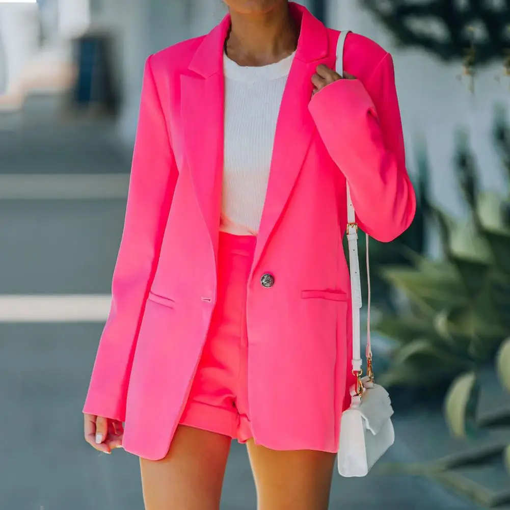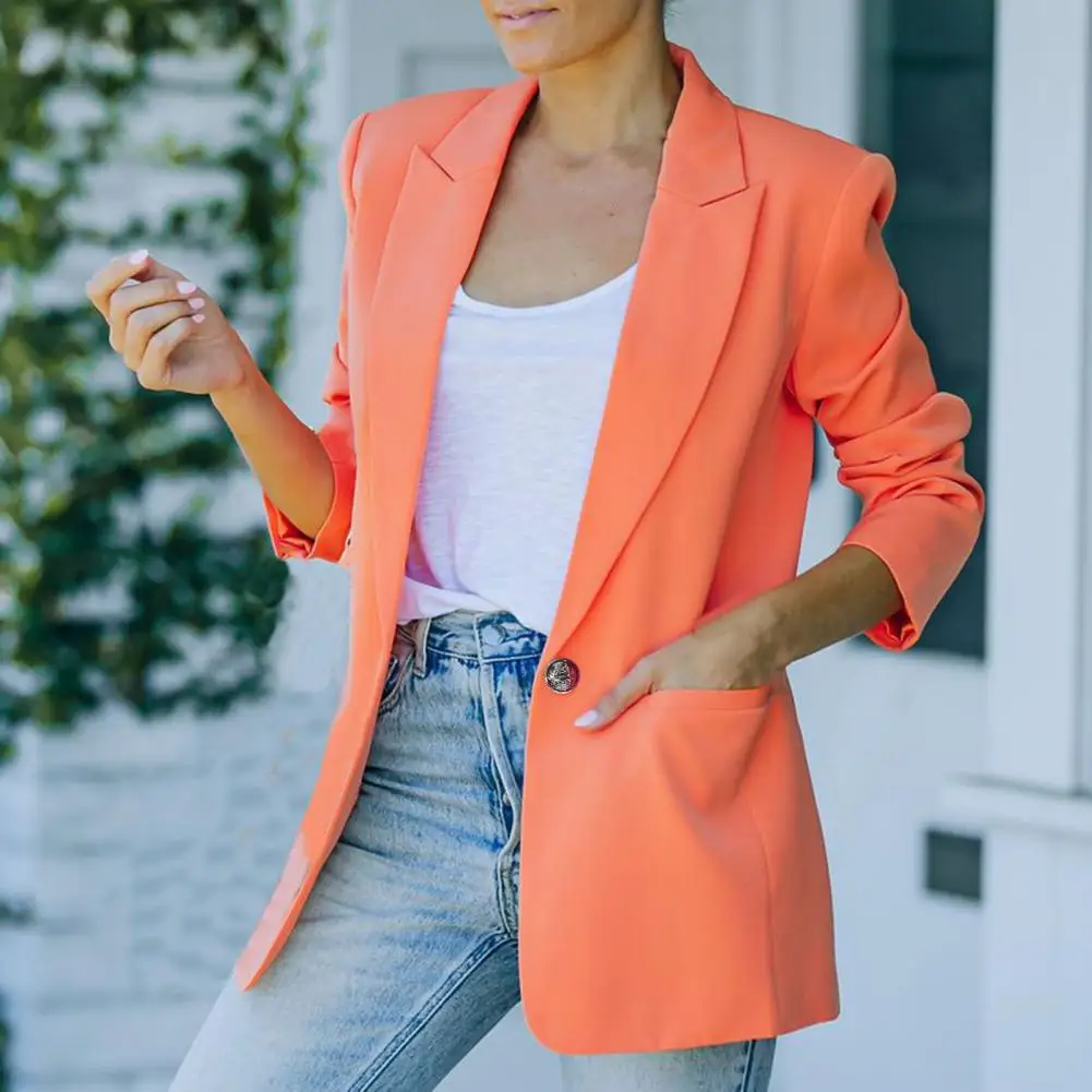 Chic Suit Jacket Soft Suit Coat Solid Color Pockets Lapel Suit Coat Long Sleeve