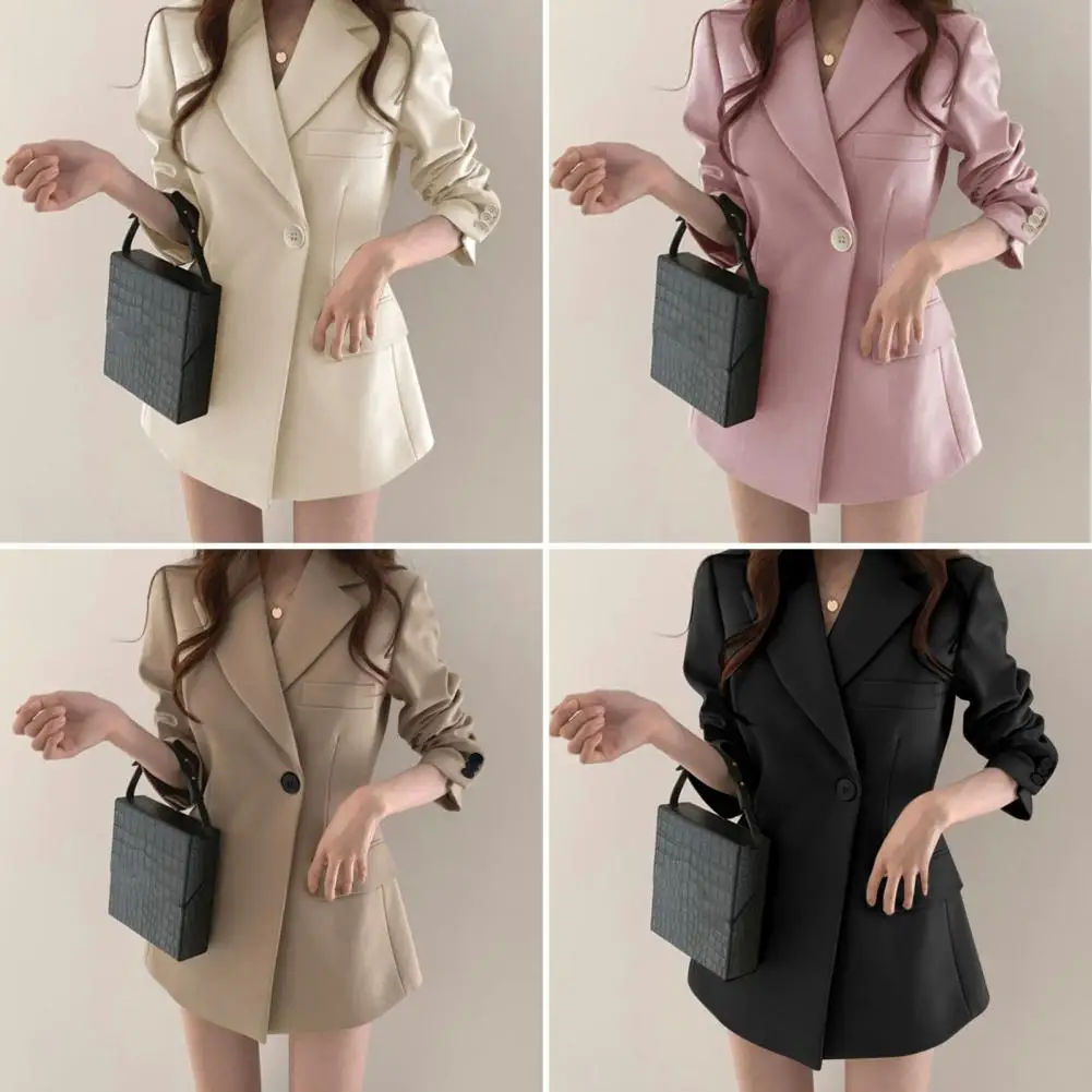 Autumn Spring Women Suit Coat Solid Color Lapel Long Sleeve Single Button Lady Blazer Slim Fit Flap Pockets Suit Jacket For Work