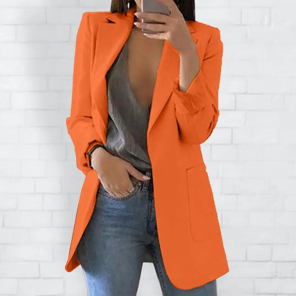 Solid Color Suit Jacket Elegant Women's Suit Coat with Lapel Pockets for Business Office Slim Fit Solid Color Outwear for Ladies
