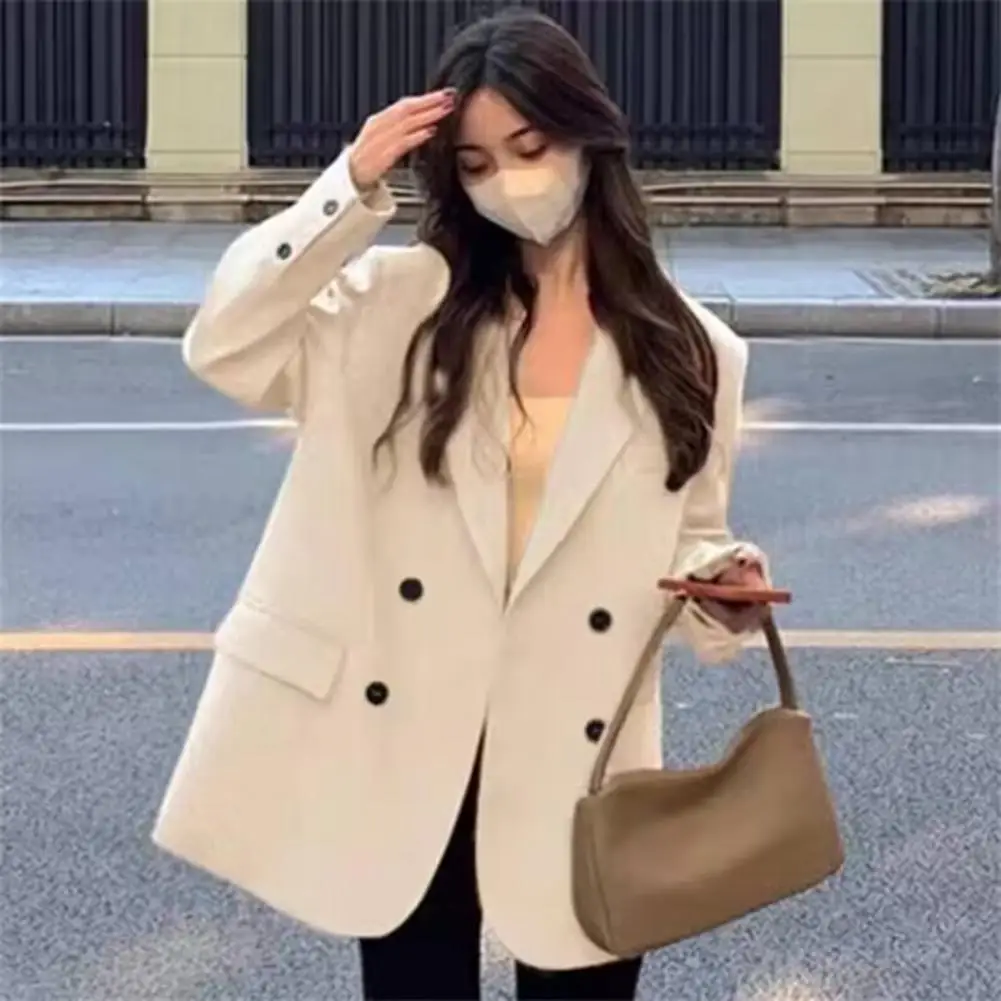 Suit Coat Elegant Women's Double Breasted Suit Jacket with Lapel Design Flap Pockets Stylish Business Outwear for Versatile