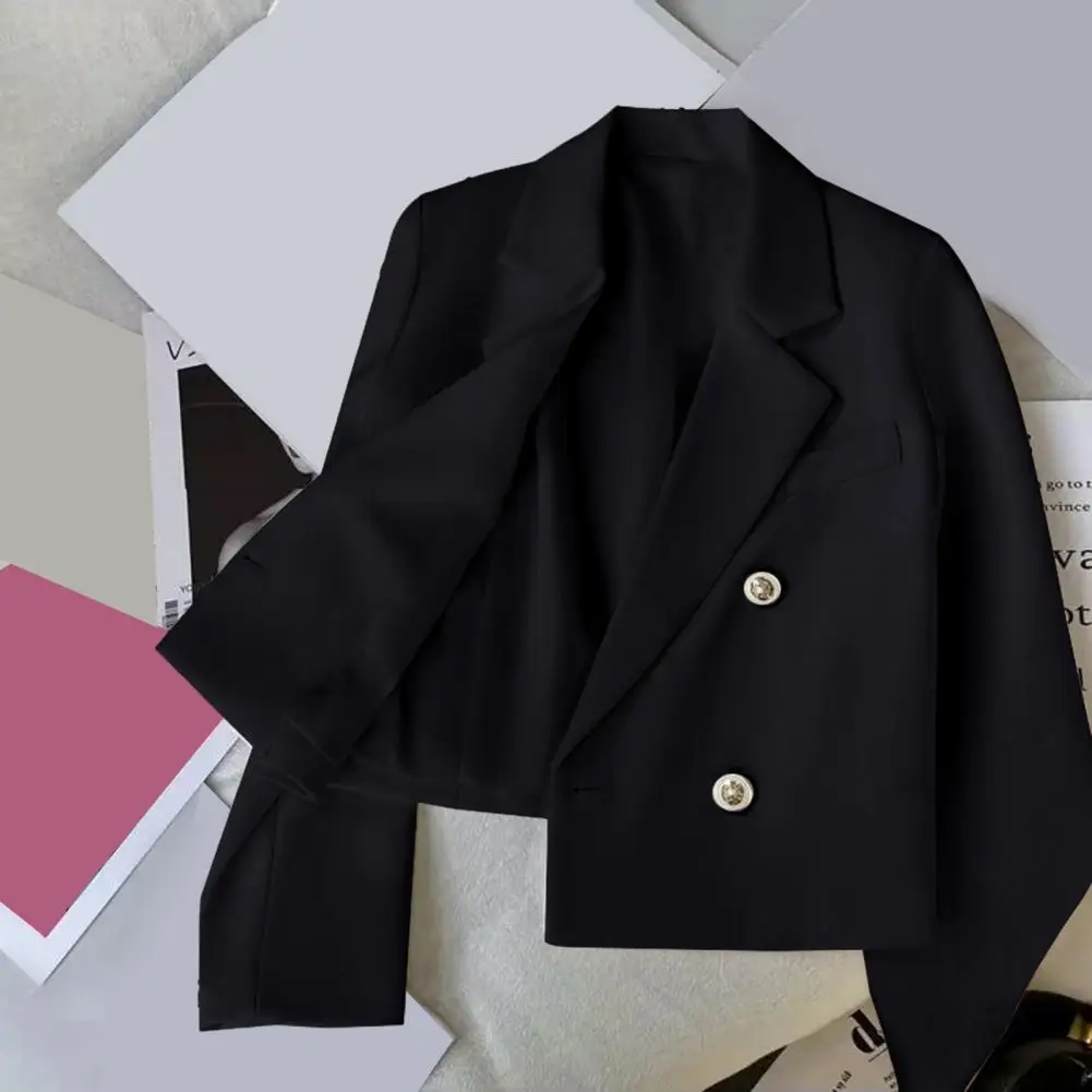 Women Lapel Cropped Elegant Double Breasted Cropped for Women Autumn Lapel Slim Fit Suit Coat Solid Color Stylish Streetwear