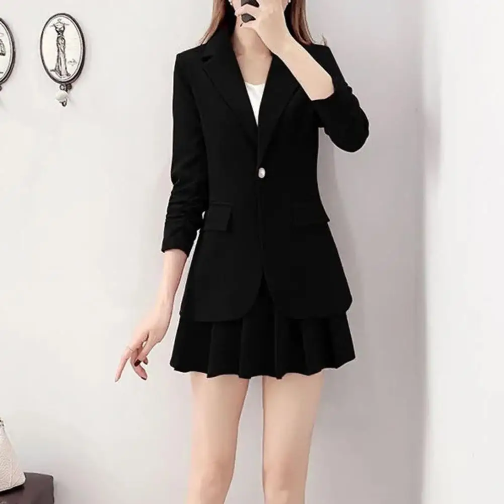Women Coat Skirt Set Women's Commuting Style Suit Set with Long-sleeved Jacket Pleated Mini Skirt Chic for Spring/autumn