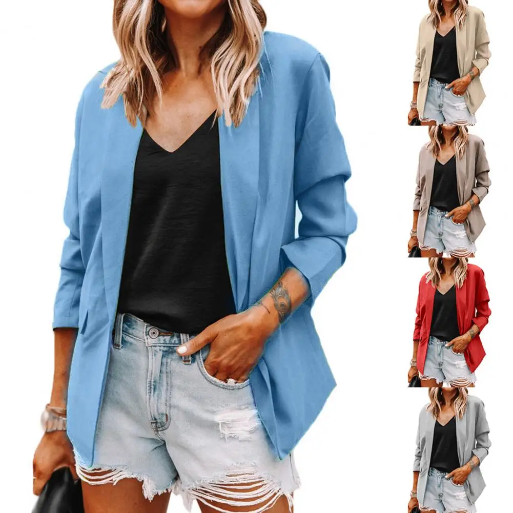 Office Lady Blazer Solid Color Temperament Autumn Winter Long Sleeve Lapel Pockets Suits Coat for Dating